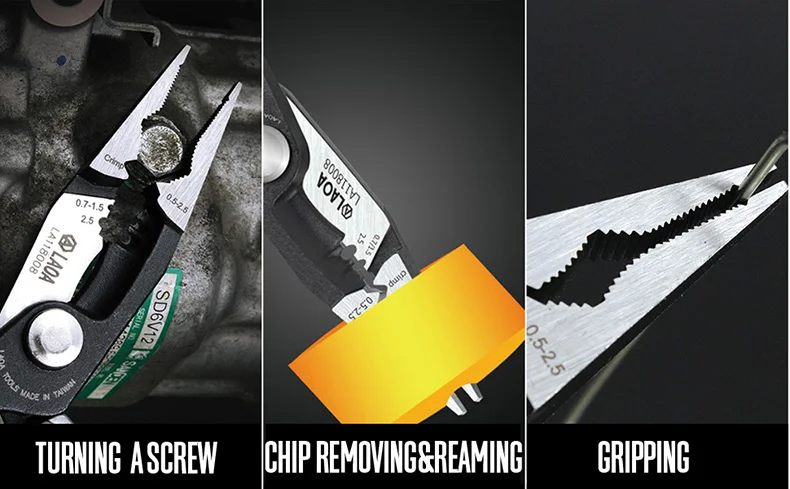 1. Шесть-в-одном многофункциональный дизайн, зажим, резка, зачистка провода, резка провода, разделительная проволока, обжимной терминал