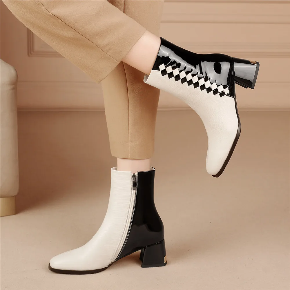 MILI-MIYA г. Новые осенне-зимние разноцветные ботильоны женские шикарные вечерние туфли на массивном каблуке с квадратным носком, на молнии, размера плюс, 34-42