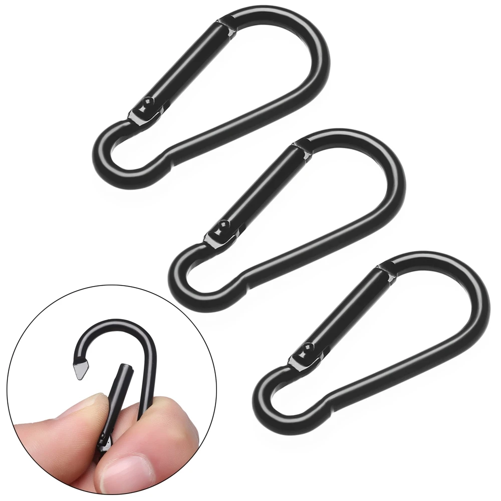 3 шт. Черный алюминиевый сплав D Карабин Открытый пружинный защелкивающийся зажим для бутылки воды брелок с крючками для альпинизма кемпинга пешего туризма