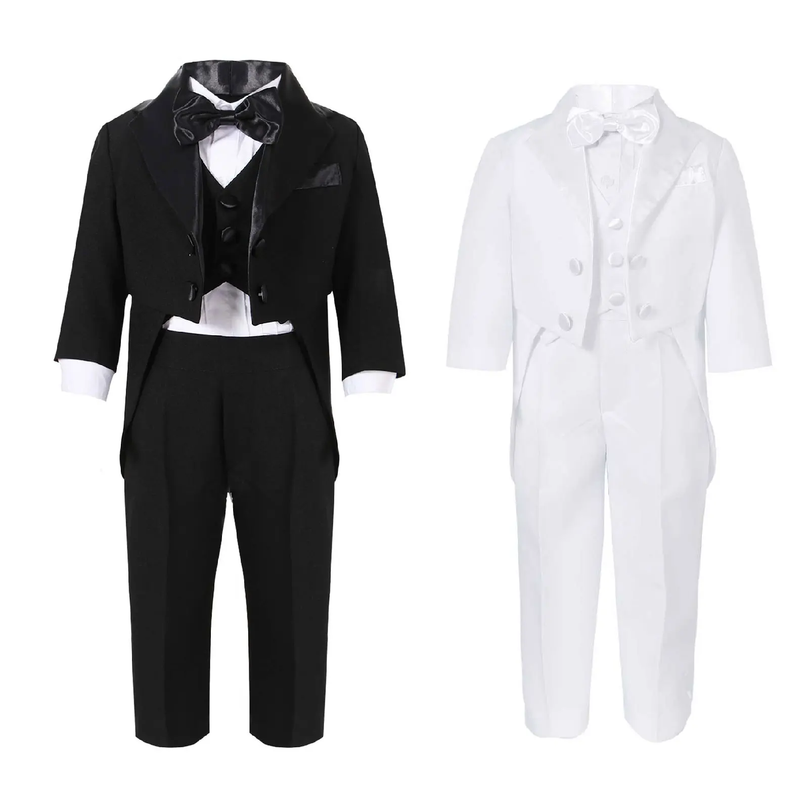 5 шт., смокинг для маленьких мальчиков, наряды для крещения, блейзер с острым подолом, жилет на пуговицах, рубашка, длинные штаны, галстук-бабочка, костюм джентльмена.