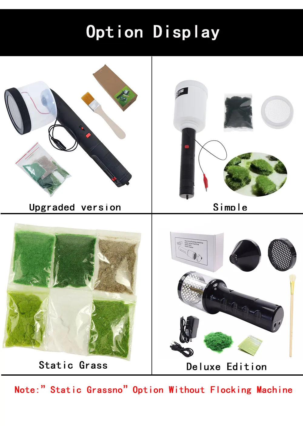Примечание: варианты: флокирующая машина или статическая трава; Вы можете выбрать в соответствии с вашими требованиями.