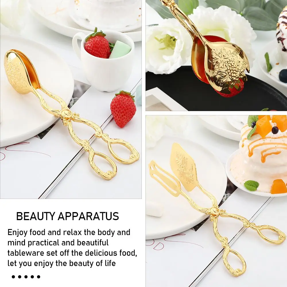 Еда Tong позолоченный закуска торт клип Салат Хлеб кондитерский зажим для выпечки барбекю инструмент фруктовый салат, торт клип.