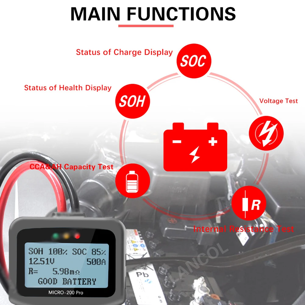 Быстро и точно Измерьте фактические холодные Скручивающиеся амперы пусковой батареи транспортного средства, здоровое состояние самой батареи и общую неисправность системы запуска транспортного средства и системы зарядки, что может помочь техническому обслуживанию быстро и точно найти проблему, таким образом, чтобы достичь быстрого ремонта автомобиля.