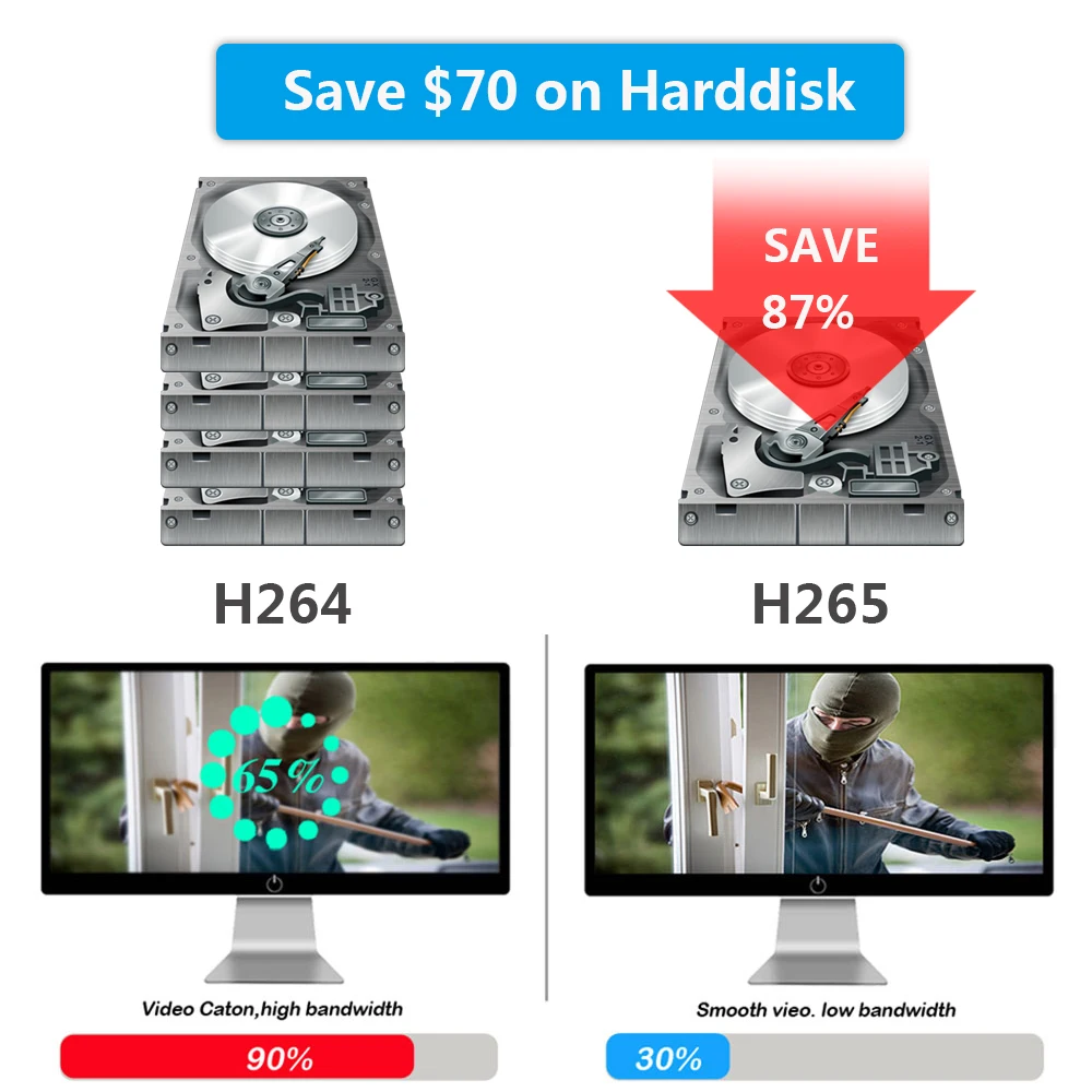 With a high resolution of 8megapixels (3840 x 2160), this 8MP HD IP surveillance camera is able to capture videos in 3840p HD quality. It is a huge advancement compared to 720p HD or 1080p Full HD. you never miss a single detail of your loved ones. which enables you to see all objects very clearly.