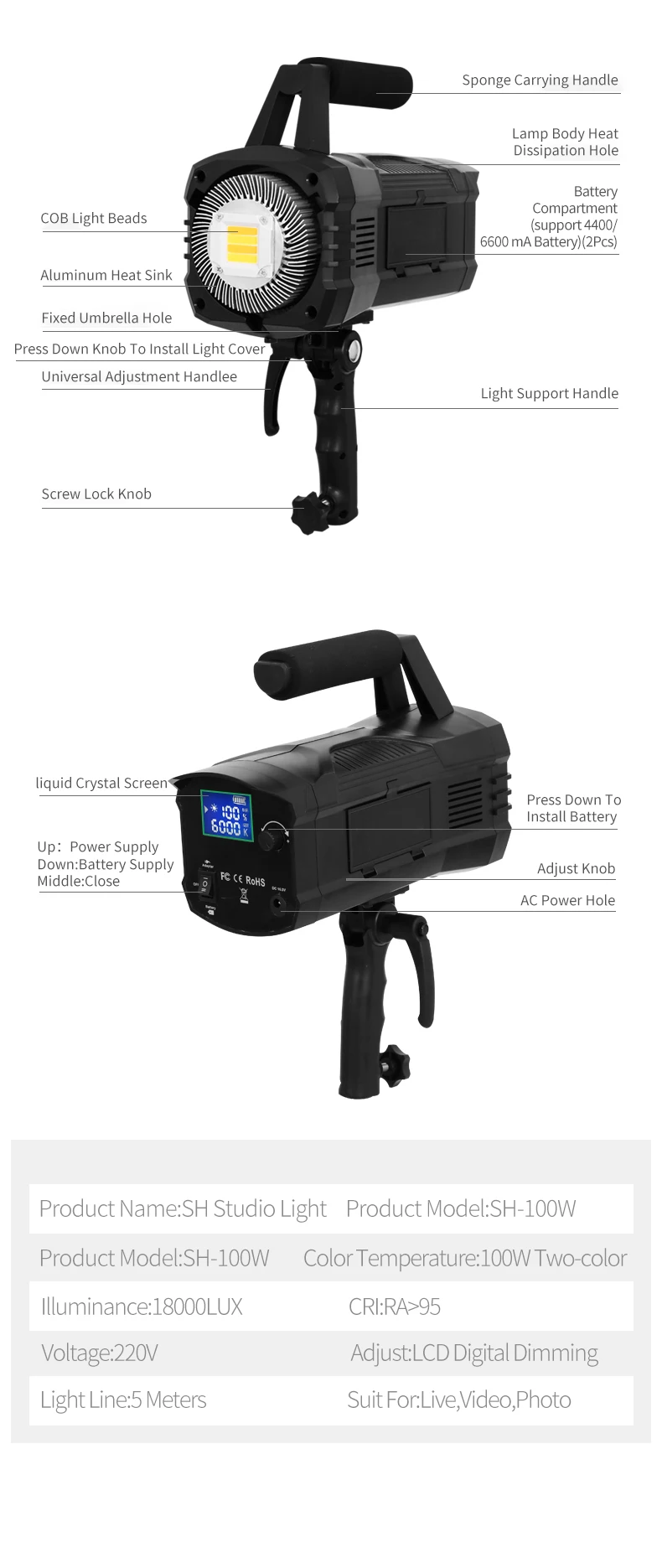 SH светодиодный светильник для видеосъемки (5800K Дневной светильник-Сбалансированный) Аксессуары для фотостудии светильник CRI96 + TLCI 95 + Яркость