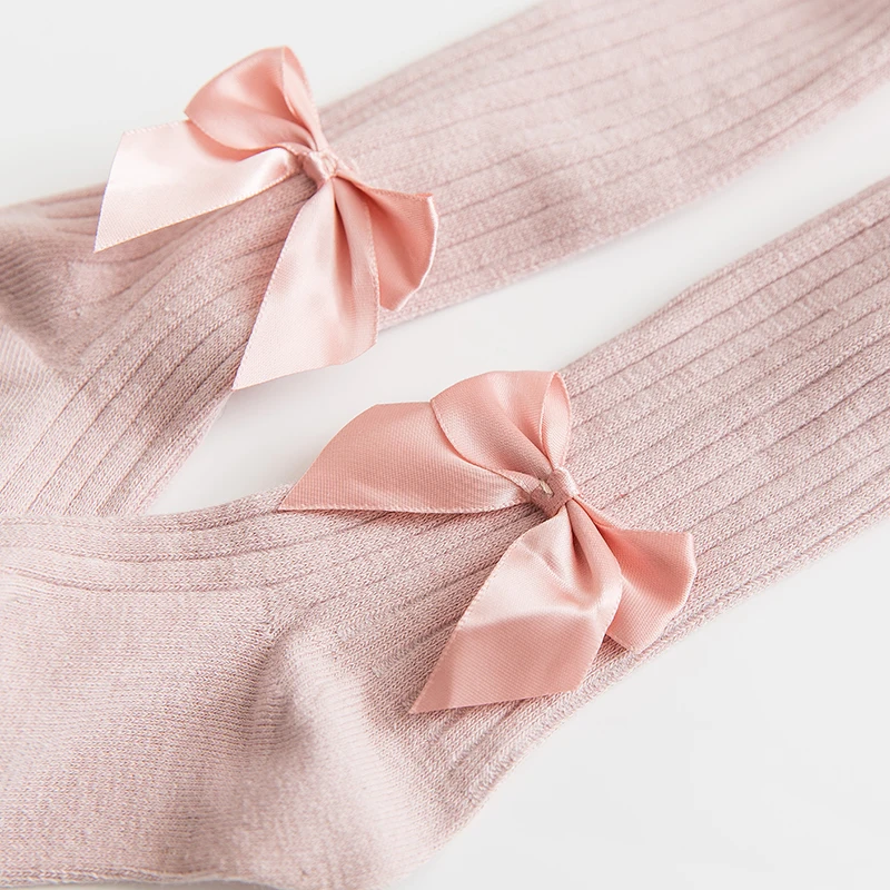 Милые колготки с бантом для девочек, вязаные хлопковые зимние колготки для девочек детские колготки с высокой талией, колготки для маленьких девочек возрастом от 0 до 8 лет