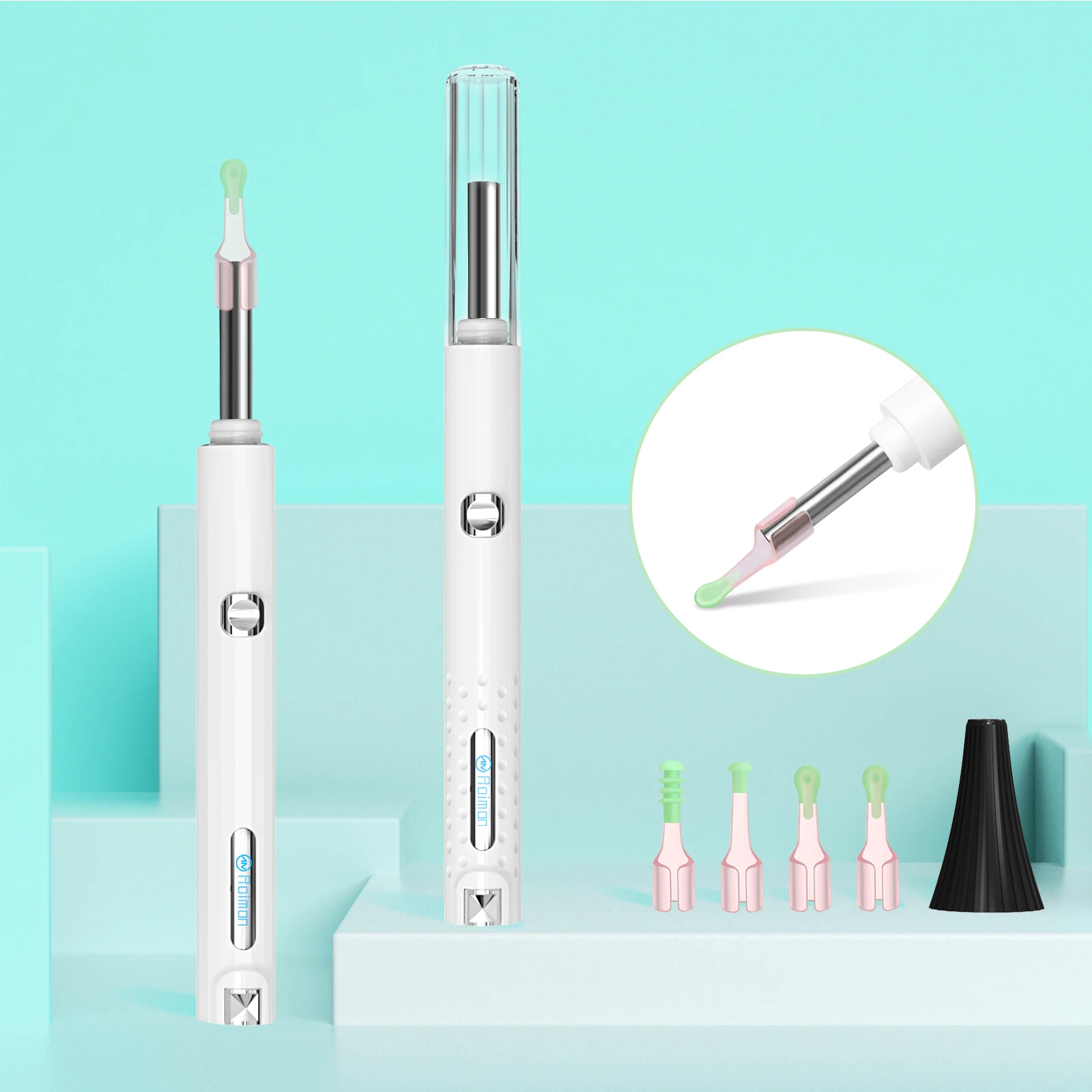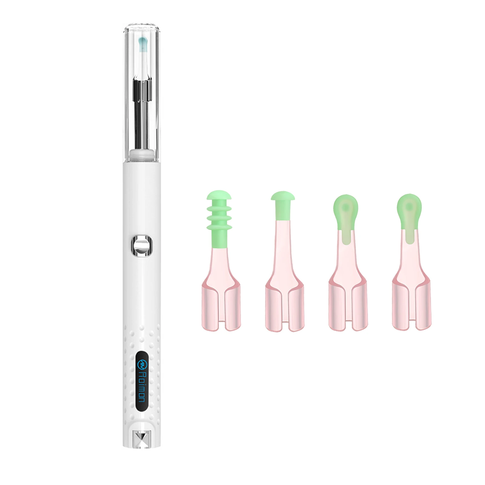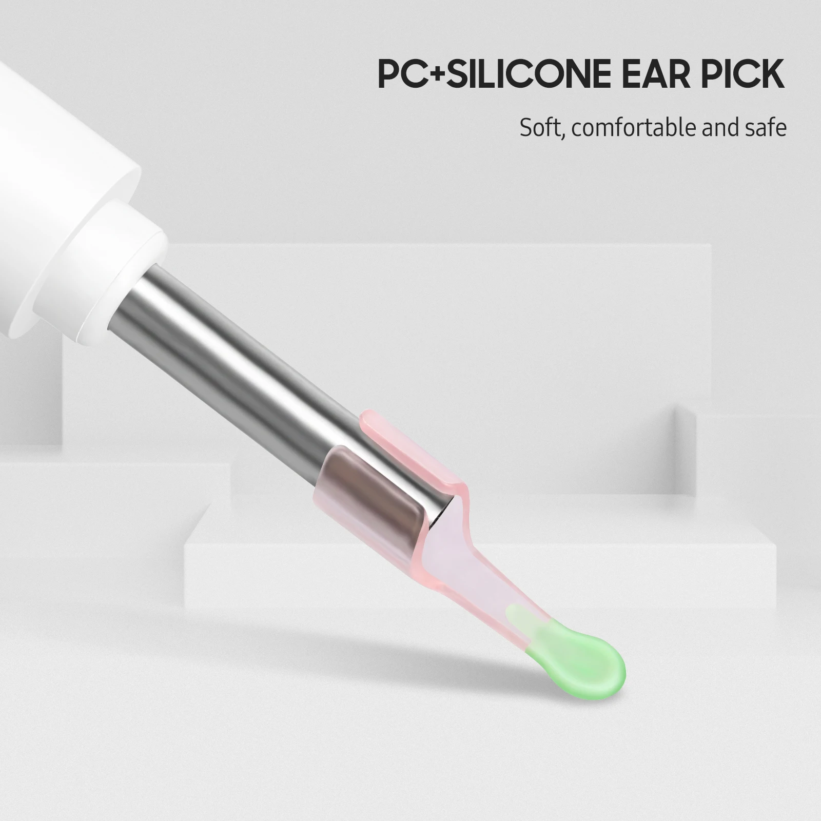 Безопасно для Применение: с 4 Сменные ушные палочки, 3,9 мм или 4,9 мм Диаметр линзы для варианта, компактный размер объектива пластика и силикона, ушным пинцетом, не повредит вашему уху, безопасный для Применение, дает вам умный опыт очистки ушей.