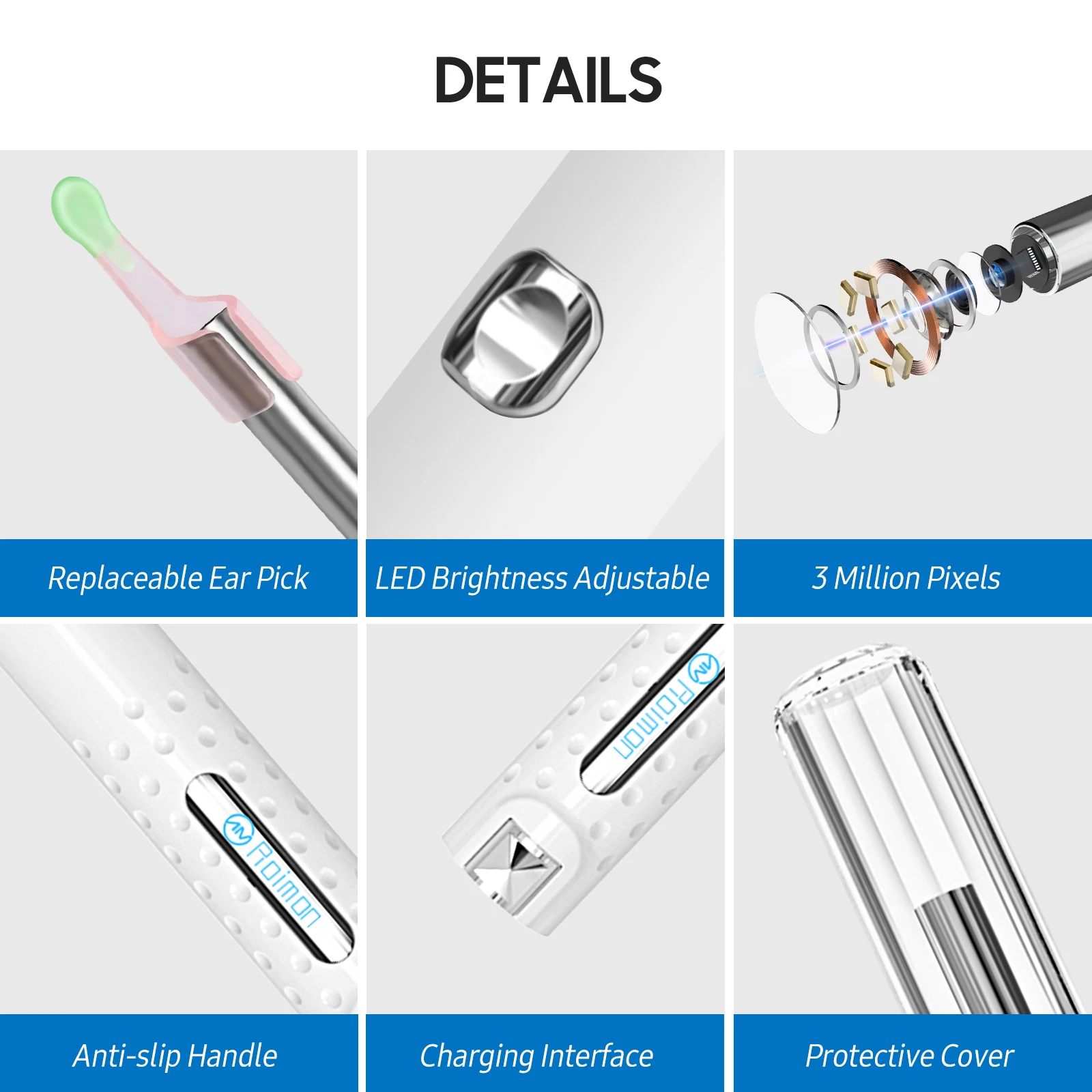 Wi-Fi умный визуальный ушной отоскоп, практичный инструмент для удаления ушного воска. С 3 миллиона пикселей, светодиодный светильник, 3-осевой гироскоп и постоянный контроль температуры, эта многофункциональная Ушная камера обеспечивает все, что вам нужно! Идеальный подарок для членов семьи и друзей.