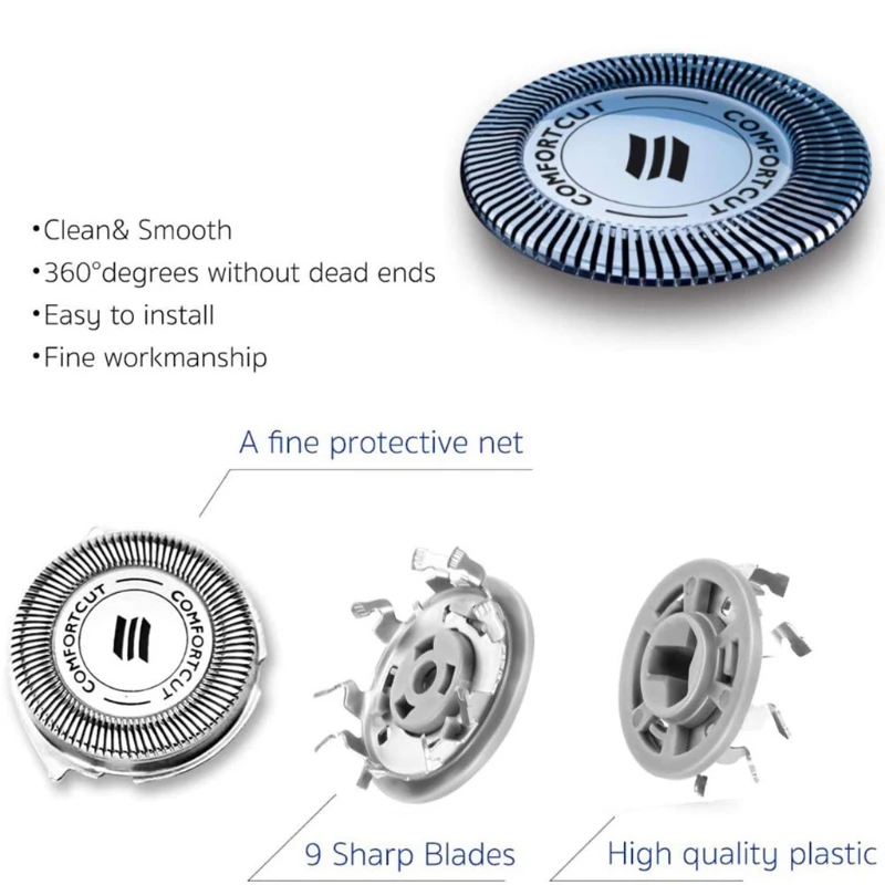 1. Многофункциональный. Exellent бритва Сменная головка для SH30 бритвы серии; S1560 S1150 S3560 S3310 S738 серии; 1000/2000/3000 серии.<br/> 2. Ценовая посылка. 1 упаковка из 3 сменных бритвенных головок, с чистящей щеткой. Рекомендуется заменять бритвенные головки каждые 12 месяцев для лучшей производительности.<br/> 3. Удобно и безопасно. Закругленные края плавно перемещаются по коже для защитного бритья. Получите комфортное сухое бритье. Бритвенные головки с тонкой защитной сеткой и закругленными профильными головками плавно скользят по вашей коже, защищая ее от царапин и порезов.<br/> 4. Советы. Для лучшего и более плавного бега и бритья поместите одну каплю масла для ребенка или масла для тела по одной каждой голове после установки.<br/> 5. Отличные сменные головки. 360 градусов без мертвых концов, без царапин. Гипоаллергенная двухтрековая сеть лезвий. 3D интеллектуальные плавающие адаптированные контуры лица. Аккуратно удалите бороду, безболезненно и более чисто. Высококачественная сменная бритвенная головка.<br/>Посылка включает в себя:
