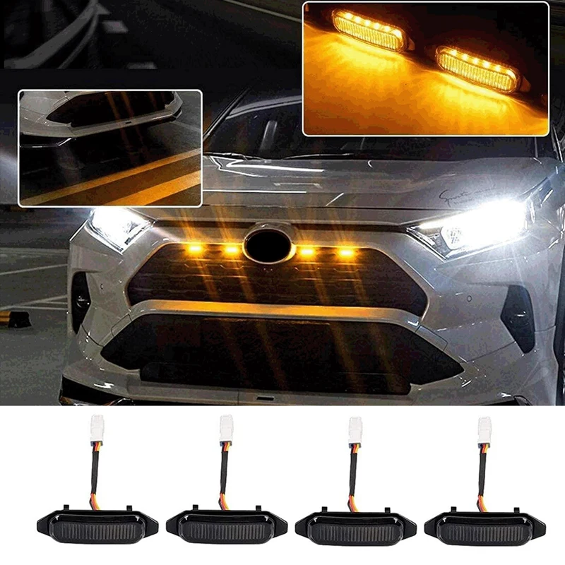 4 шт. светодиодный светильник для переднего гриля s для Toyota RAV4 2019 2020 2021 внешний гриль-лампа, белый Янтарный светильник