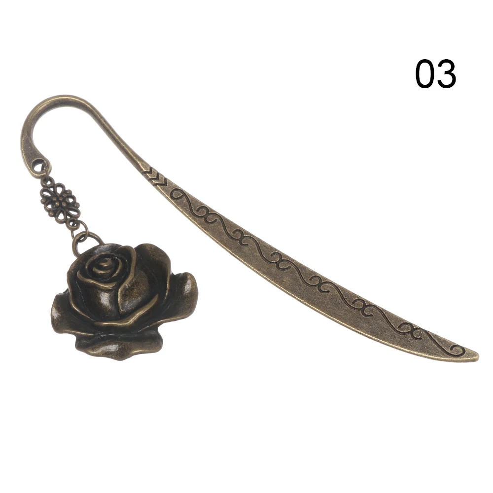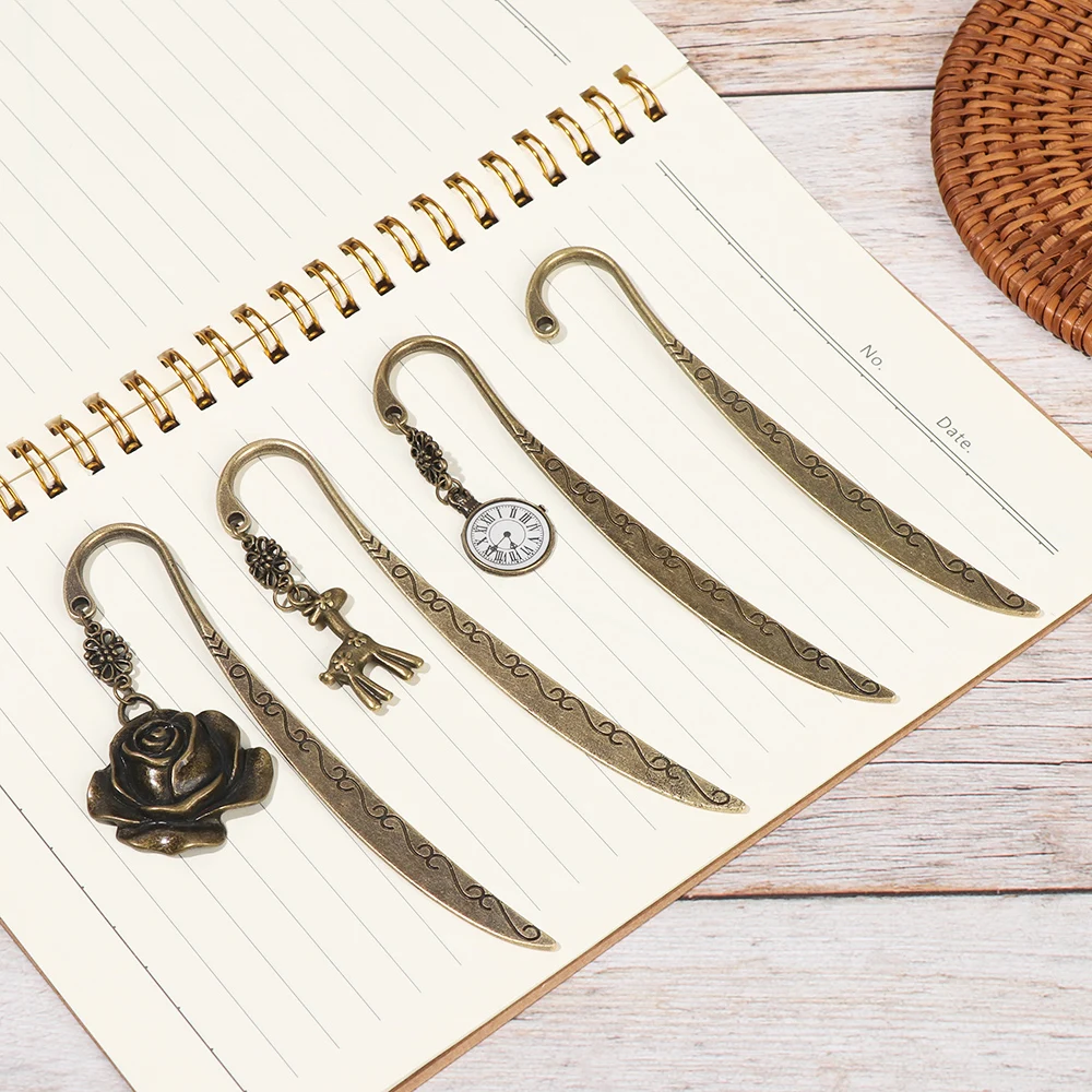 6 Styles Retro Metal Rose Clock Watch Bookmarks Creative Bronze Deer Delicate Book Page Marker Handcrafted Gift
