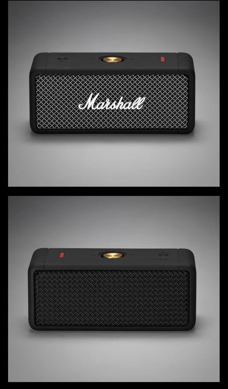 Emberton сочетает в себе современные технологии с культовым дизайном Marshall, чтобы доставить жесткий звук, сохраняя классический вид. Фирменные детали, такие как прочная металлическая решетка и знаменитый скрипт Маршалла, украшают переднюю часть динамика, повторяя наследство рок-н-ролла.