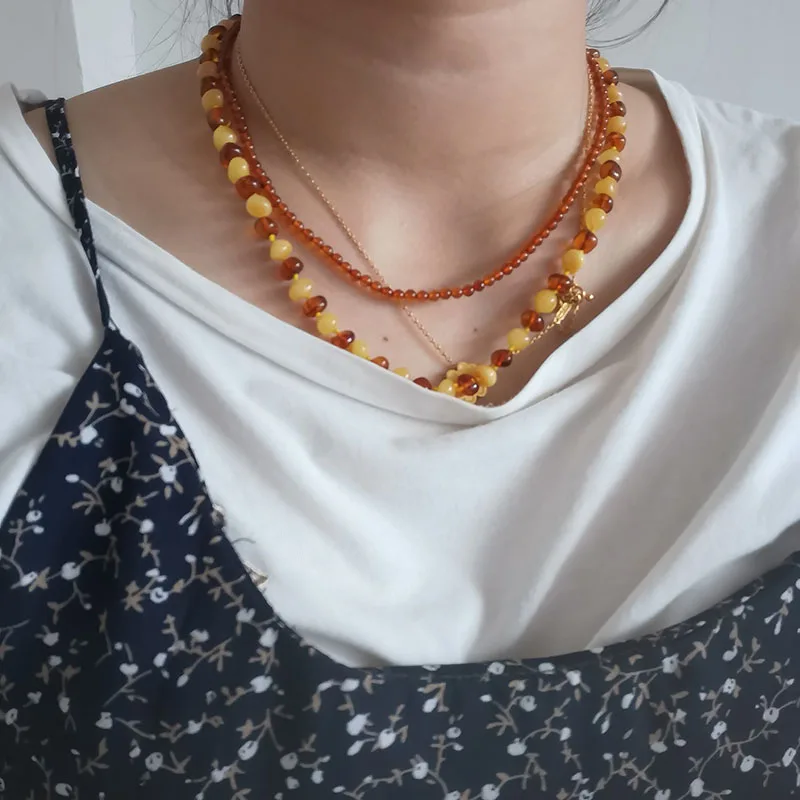 【Продажа очков 】Нежный изящный,Шикарный дизайн! Маленькие коньячные Янтарные Бусины, очень маленькие, но идеально сочетаются со всем вашим свитером или другой одеждой.