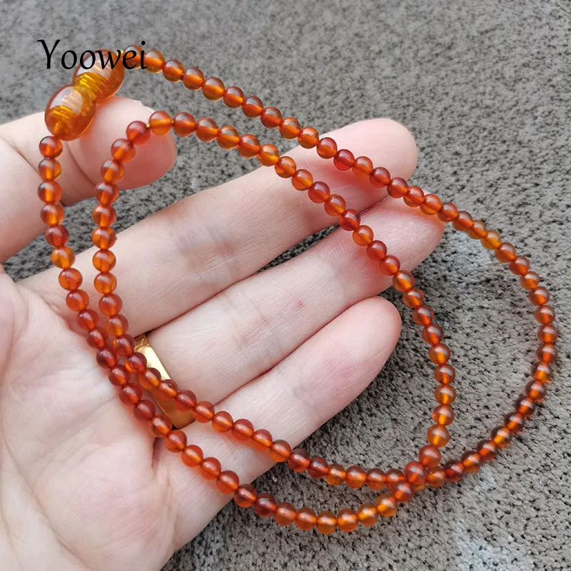 【Title】Yoowei 3 мм 42 см ожерелье из черного янтаря для подарка Оригинальные круглые коньячные бусы вечерние ювелирные изделия из натурального янтаря оптом