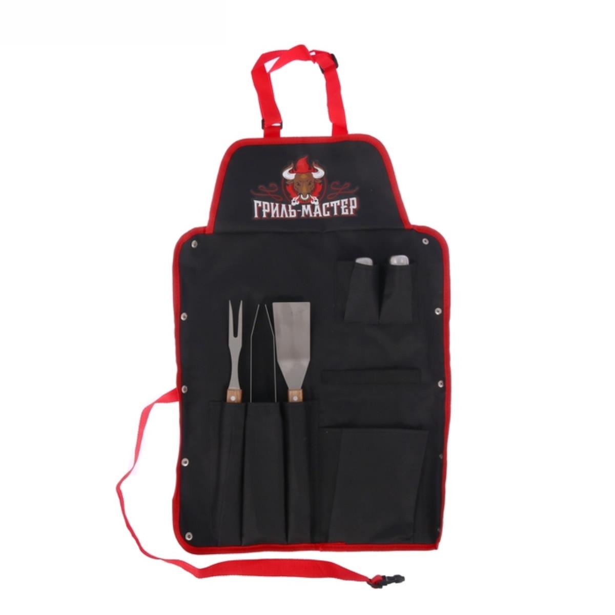 В сложенном виде фартук застёгивается на клёпки, поэтому из него ничего не выпадет. Длина поясного ремня — 72 см, шейного — 60 см. В наборе вы найдёте: вилку для мяса, лопатку, щипцы, солонку, перечницу. Характеристики: Размер 20 см × 49 см × 3 см Вес брутто 350 г Особенности Набор Да Цвет Разноцветный Количество персон 1 В наборе, шт. 6 Рисунок Да Материал Текстиль, Нержавеющая сталь