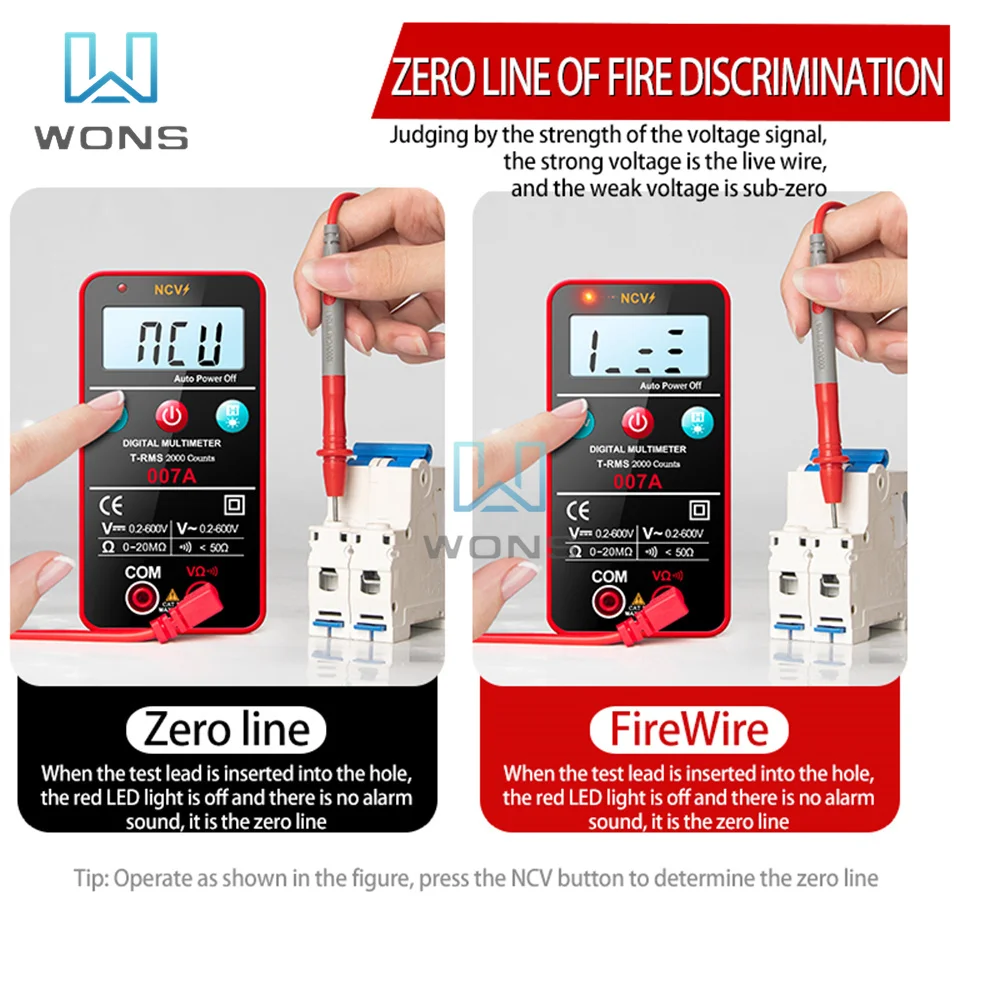 3. Индукционное Обнаружение NCV: Встроенный датчик, при обнаружении рядом напряжения переменного тока, красный светодиодный индикатор мигает и звуковой сигнал