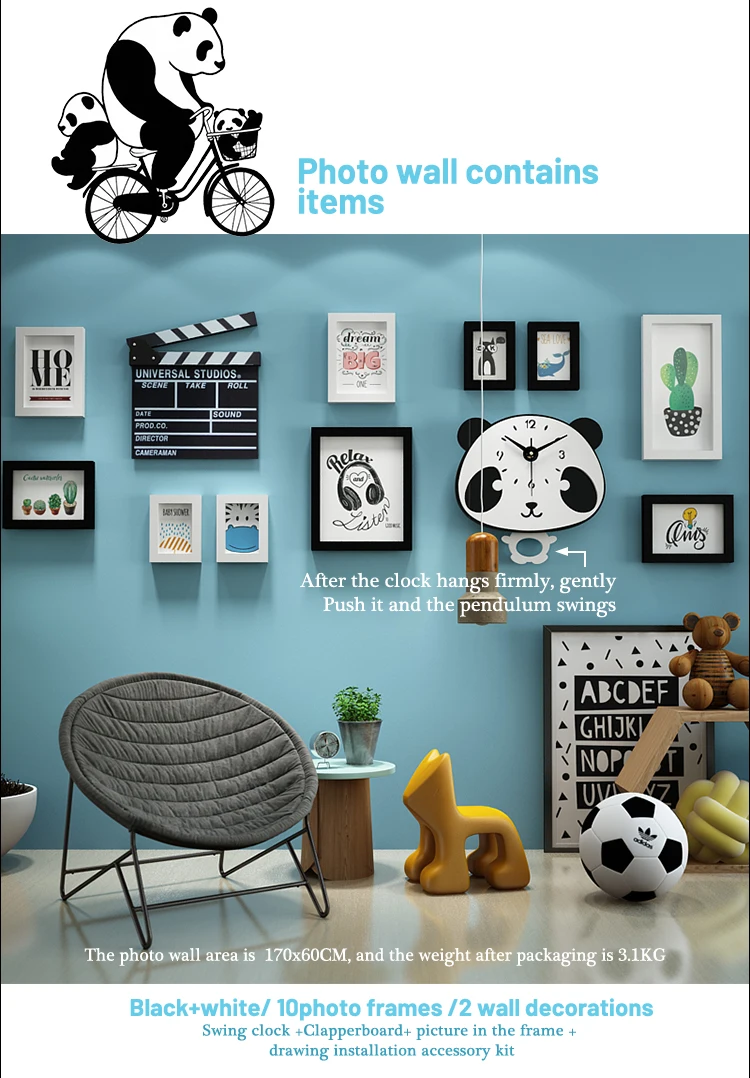 Фотообои фоторамка набор панда качели часы набор из 12