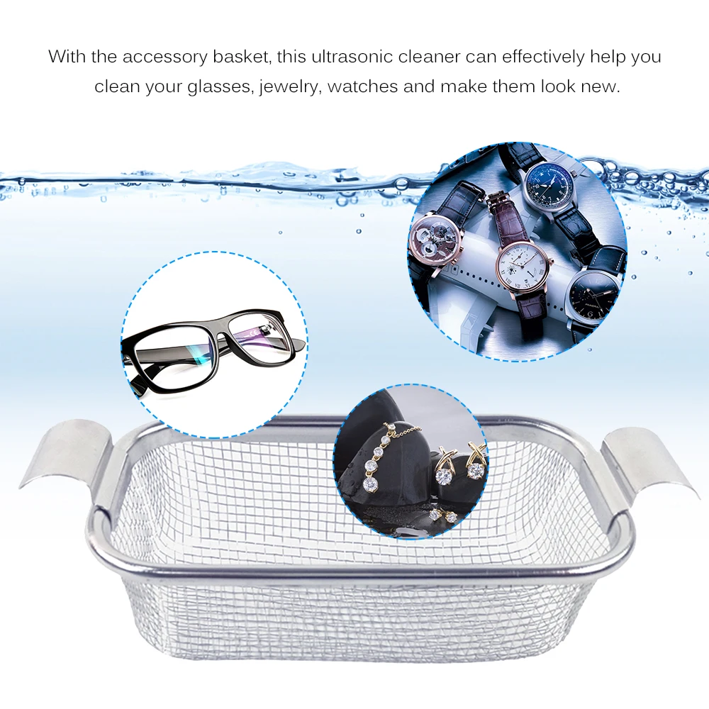 С корзиной аксессуаров этот Ультразвуковой очиститель может эффективно помочь вам очистить ваши очки, ювелирные изделия, часы и сделать их новыми.