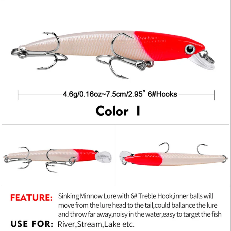 1 шт. 4,6 г 75 мм рыболовные приманки Minnow воблер плавающий бас Троллинг жесткая приманка карп Pesca рыболовные снасти 6 # крючок инструмент