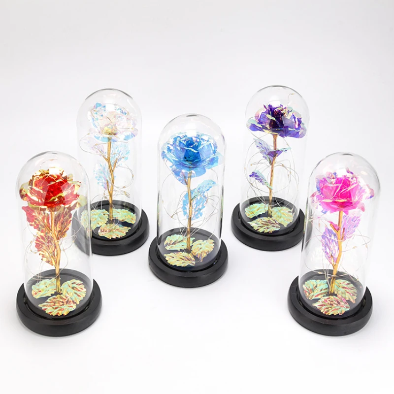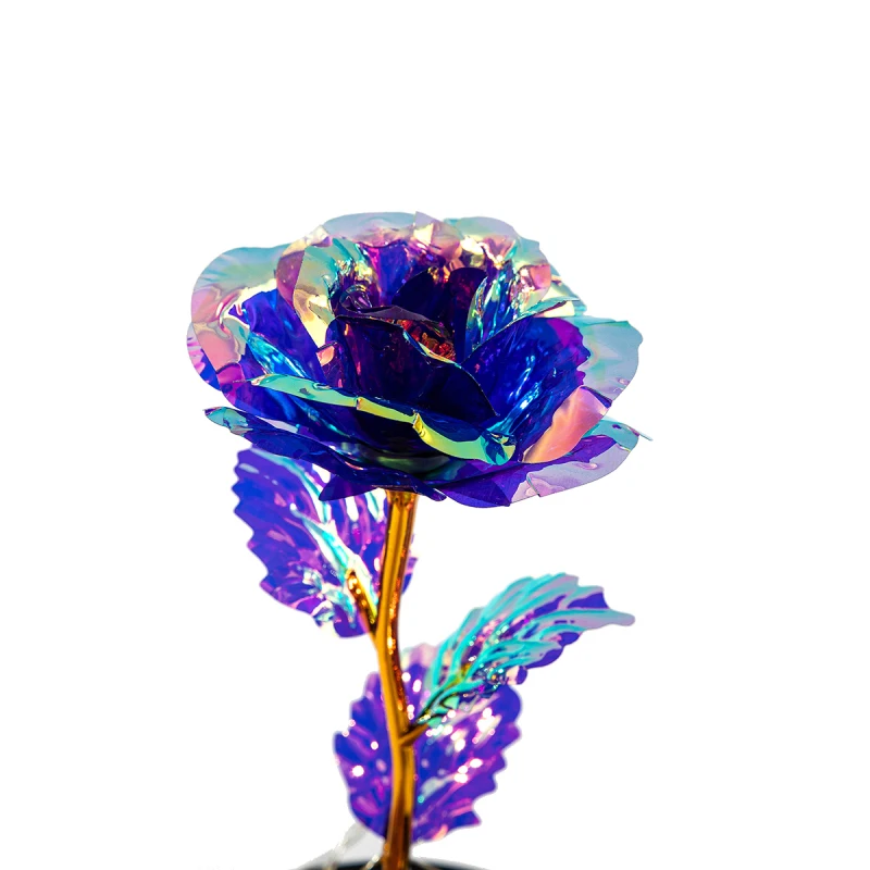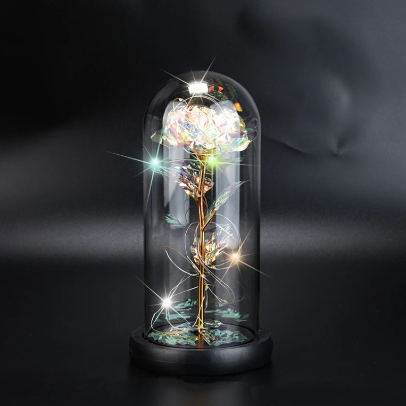 Everlasting Rose: This colorful rose will never wither and die. The everlasting rose is flawless. It is full of endless hope and beauty, just like a rainbow. It will bring you unlimited love and beauty. LED rose: The rose in the glass dome is wrapped around an LED light bar, powered by 3 AAA power supplies (not included), and the LED light bar shines with warm white light. Romantic rose gift ideas: As a symbol of love, they can be given to lovers, girlfriends, mothers, wives, and ladies. Special gifts for Thanksgiving, Christmas, Valentine's Day and Mother's Day. Galaxy Rose luminous size: 8 inches high, 3.5 inches diameter and 4.3 inches black base. The thickness of the glass is 0.12 inches. Reliable packaging. Gift box packaging: The preserved rose in the glass ball will come with a beautiful packaging gift box, so you can give it as a gift without spending time on the packaging.