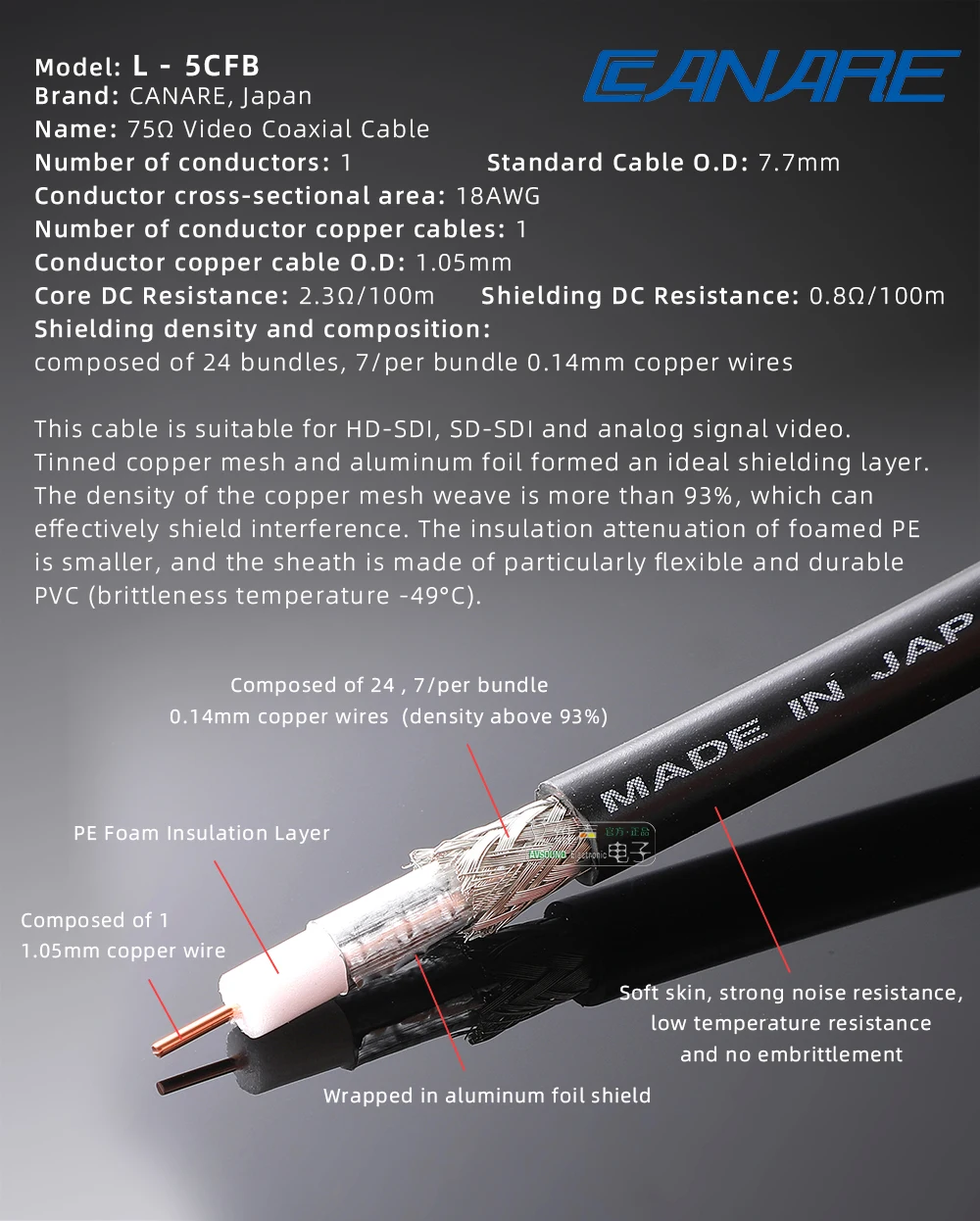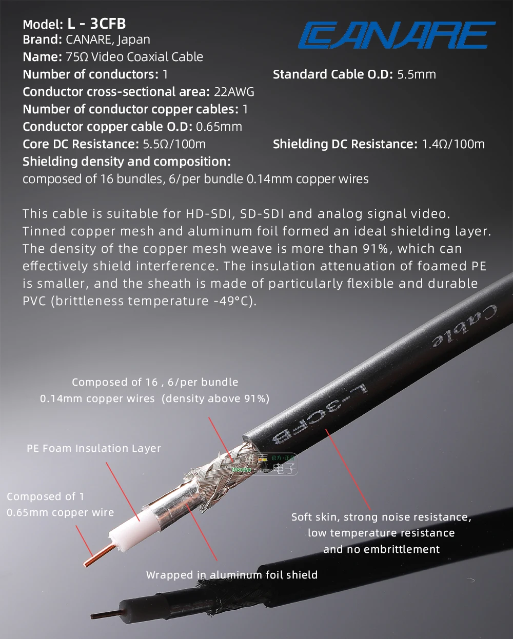 Светильник, очень гибкий коаксиальный кабель, эквивалентный RG59B/U. Это идеальный Соединительный кабель, подходящий для всех видеосъемки, вещания на улице и видеосъемки.