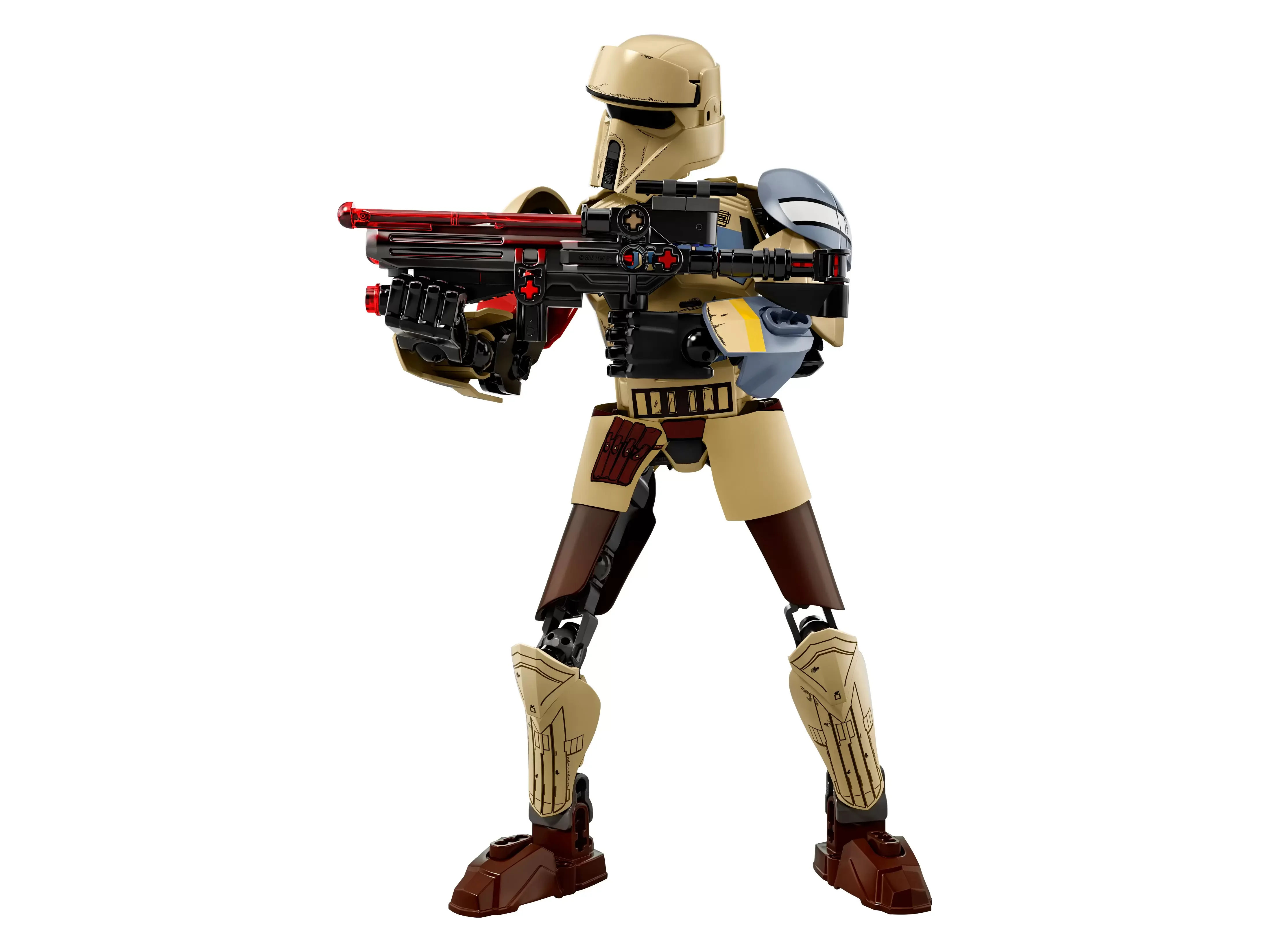 Функциональный детализированный робот Лего из серии Звездные Войны «Штурмовик со Скарифа» понравится детям от 7 до 14 лет. Воин обладает подвижными сгибающимися конечностями, поэтому легко принимает любую боевую позу, не теряя при этом равновесия. Песочный штурмовик одет в прочную броню и вооружен мощной космической винтовкой с лазерным прицелом. При нажатии на курок орудие стреляет красными снарядами либо длинными стрелами. Набор Lego Star Wars состоит из 89 элементов и подробного руководства по сборке.
