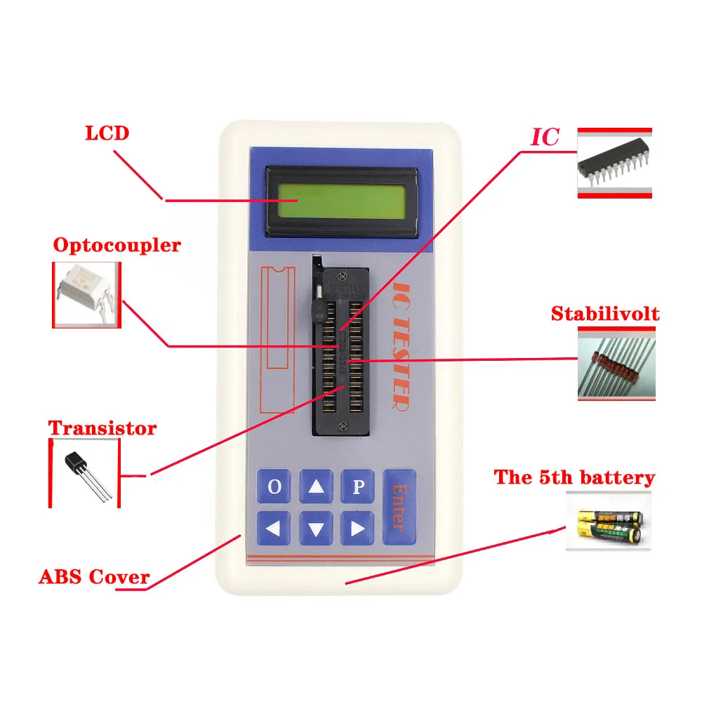 Он может протестировать 74ch серии, osmo серии, cd4000 серии, hef400 серии, 4500 серии, операционные усилители, Интерфейсные чипы, оптомуфты, автоматическая идентификация транзисторов и идентификация напряжения регулятора напряжения.