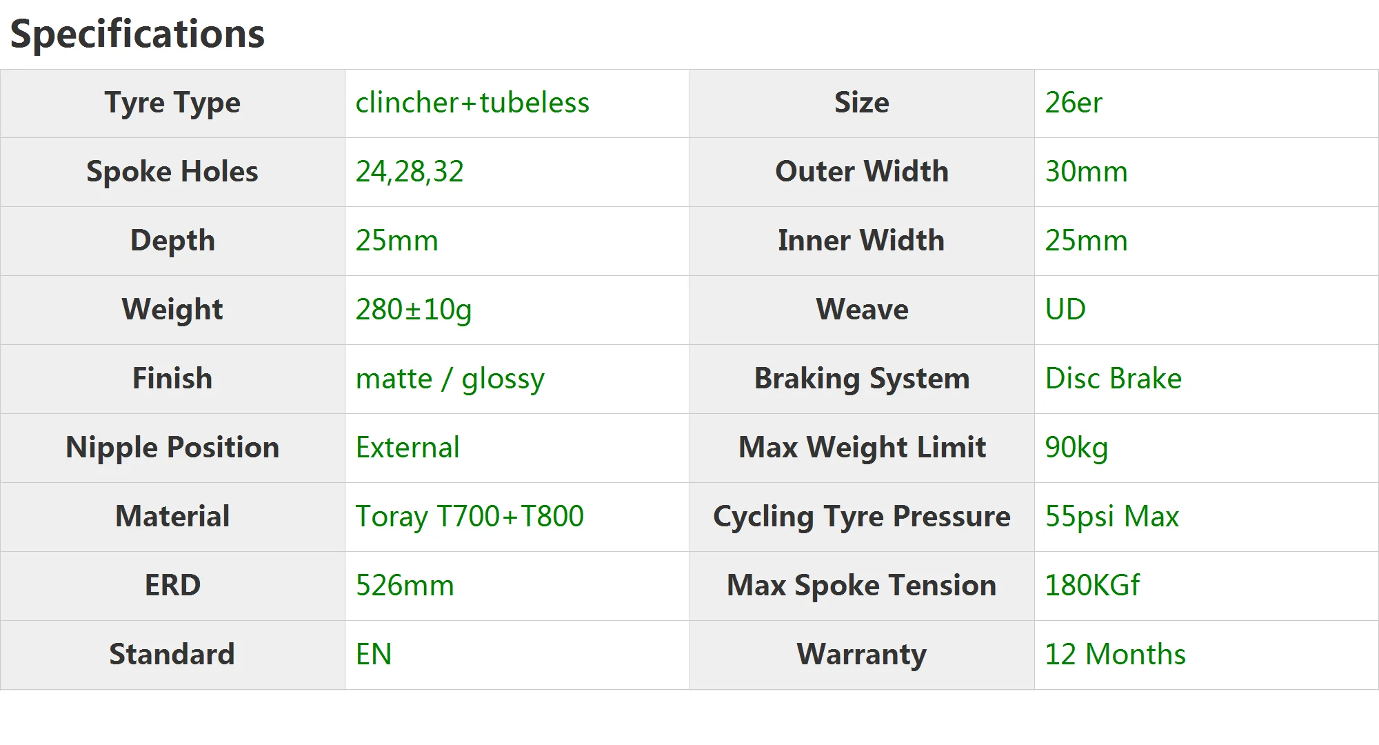 280 г 26er MTB XC Clincher бескамерный 30 мм * 25 мм углеродный обод Hookless