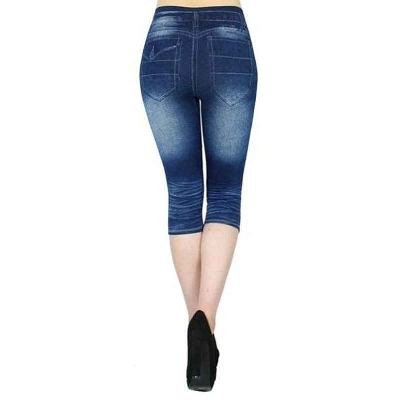 Новинка, имитация джинсов, леггинсы для женщин, Стрейчевые короткие леггинсы с принтом, укороченные штаны, летние бриджи с высокой талией, джеггинсы