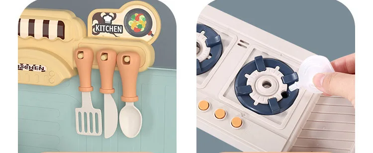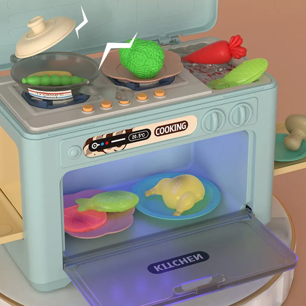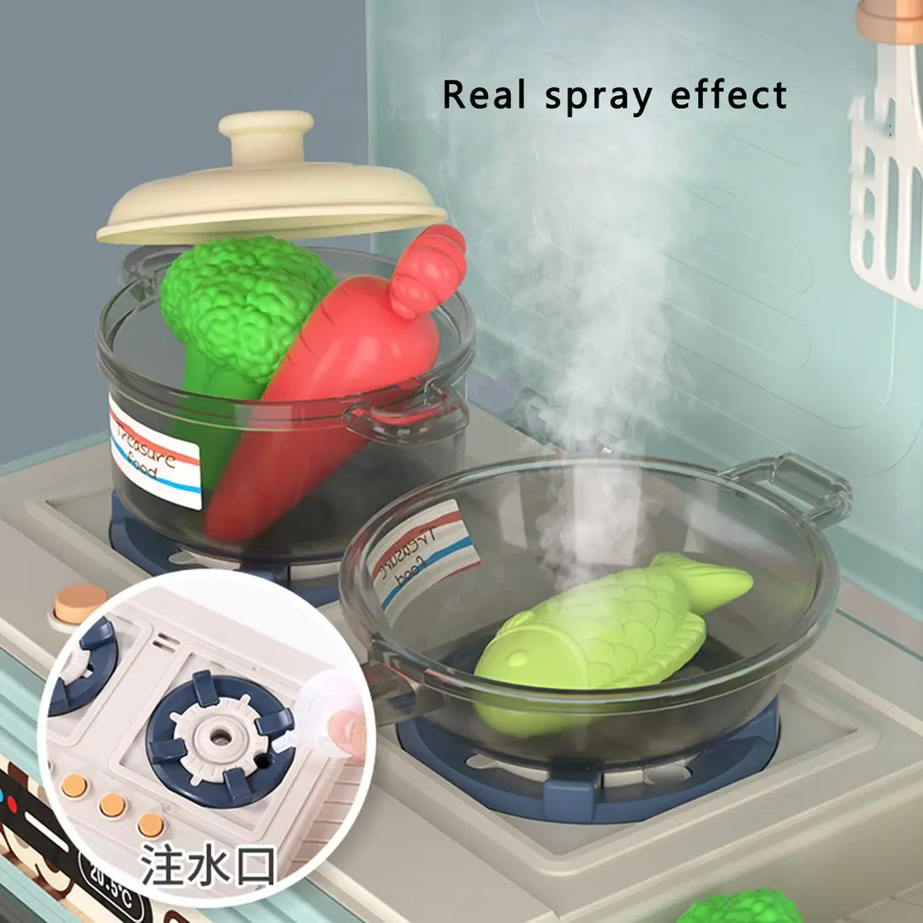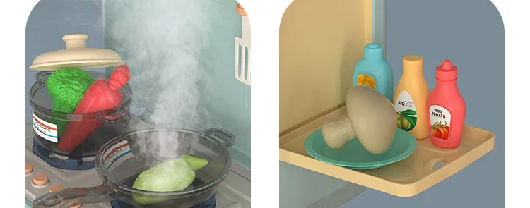 Эту модель можно переключить на высококачественную мини-кухонную форму в любое время, а паровой спрей может издавать звук и светильник, имитируя официальный выход, чтобы дети влюбились в приготовление пищи.