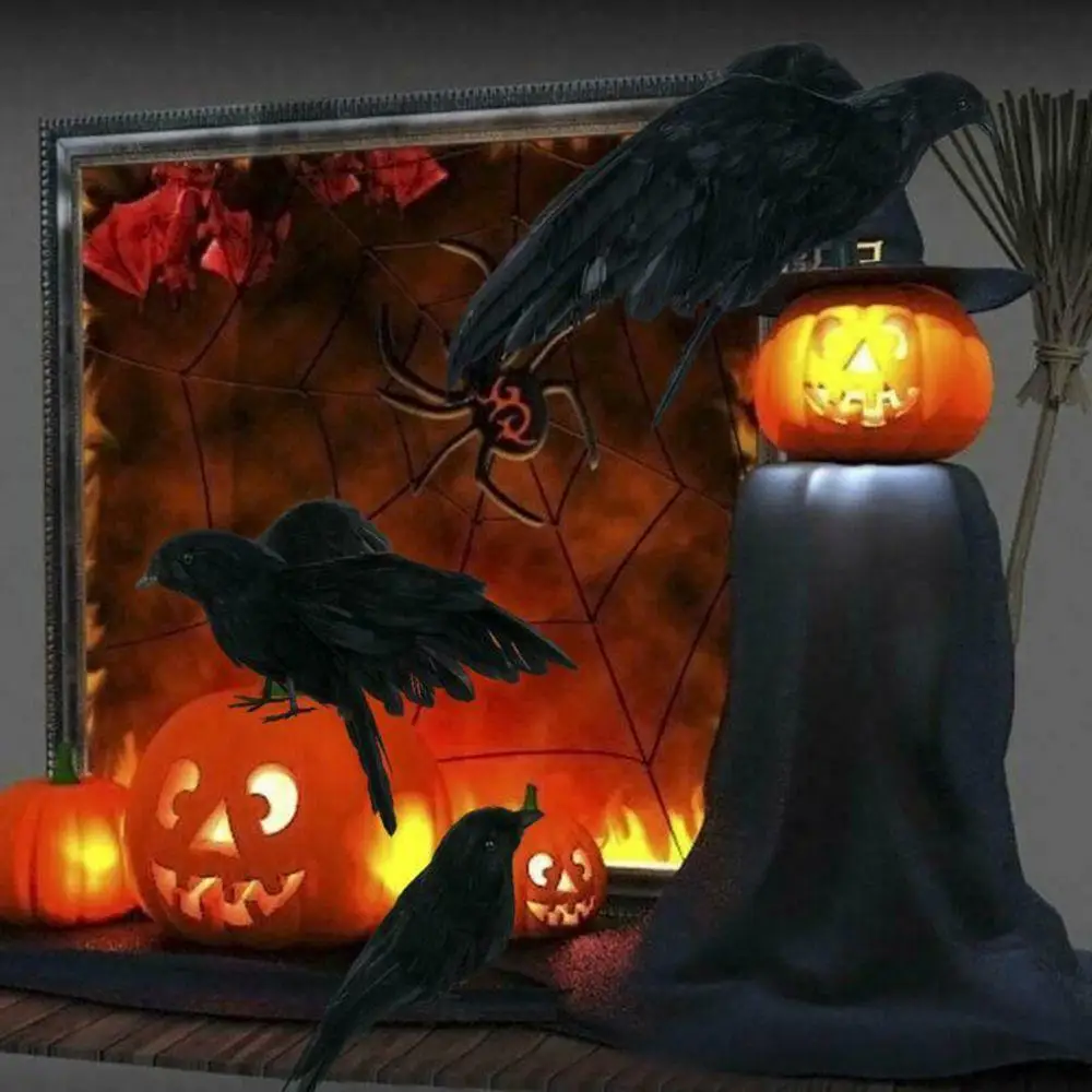 Искусственные Ворон с перьями, реалистичное черное украшение на Хэллоуин, украшение дома с привидениями