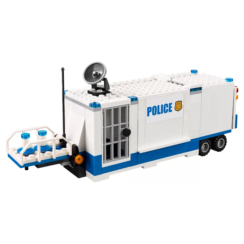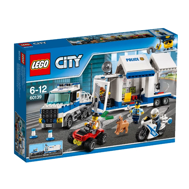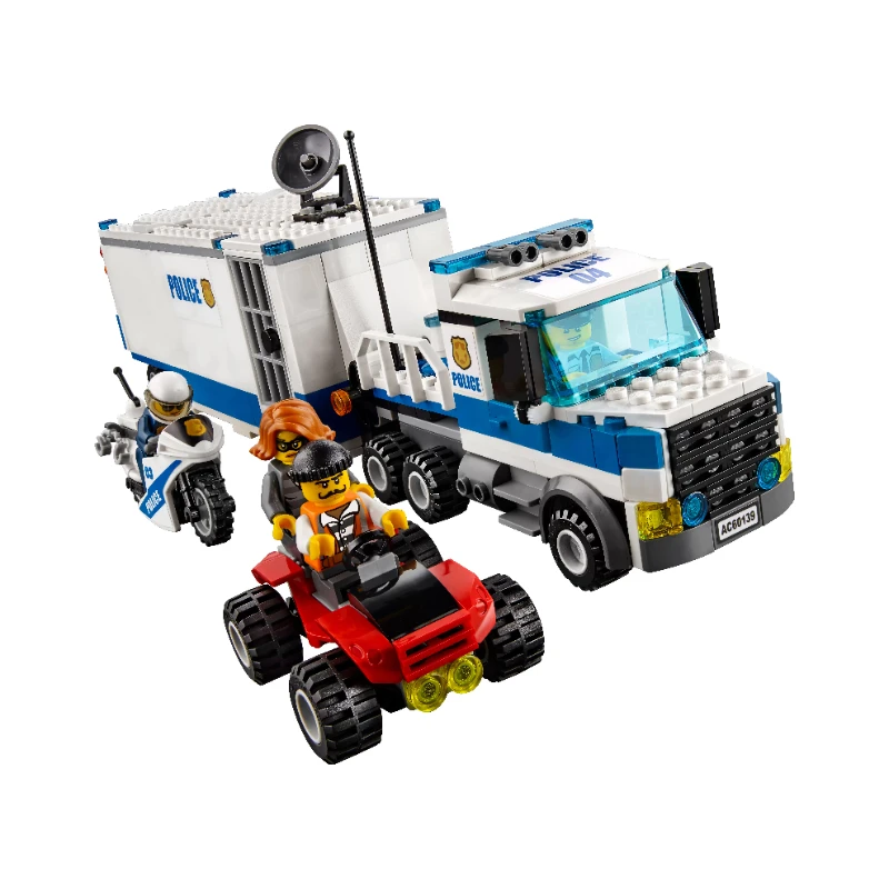 ОПИСАНИЕКонструктор «Мобильный командный центр» из серии Lego City предназначен для мальчиков от 6 до 12 лет. В комплект входят 374 элемента, включая 5 минифигурок: 2 полицейских, 2 преступников и собаки. Основой командного центра является грузовик, оборудованный тюрьмой и приборами для слежения. В наборе присутствуют мотоцикл полицейских и квадроцикл преступников. Транспорт нарушителей закона оборудован цепью с крюком, которым можно зацепить решетку тюремной камеры. В комплект входят следующие аксессуары: - кружка , - антенна , - рация , - спутниковая тарелка , - гаечный ключ , - банкноты , - наручники , - мешок , - 2 дорожных ограничителя.