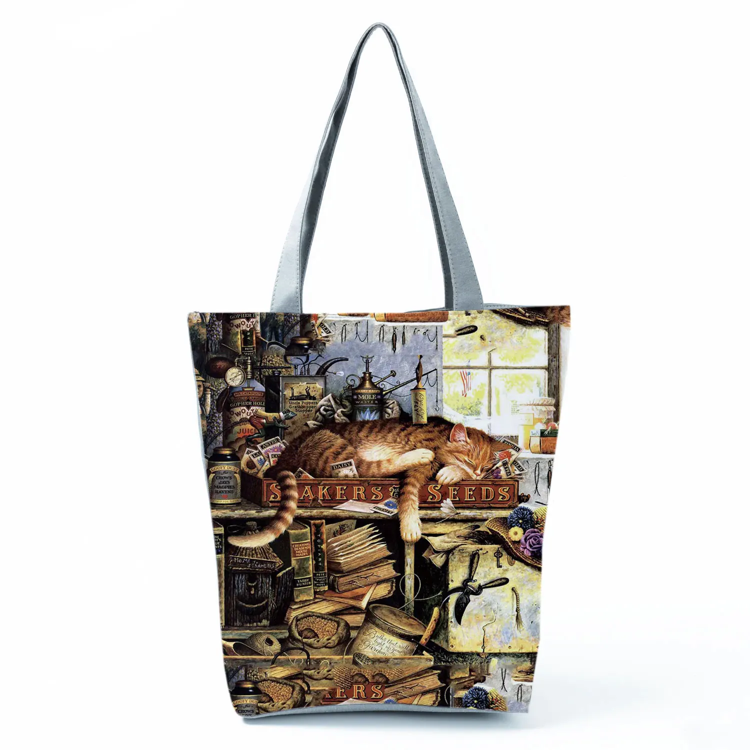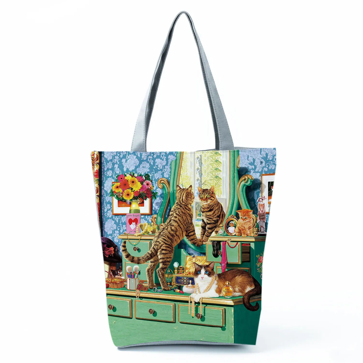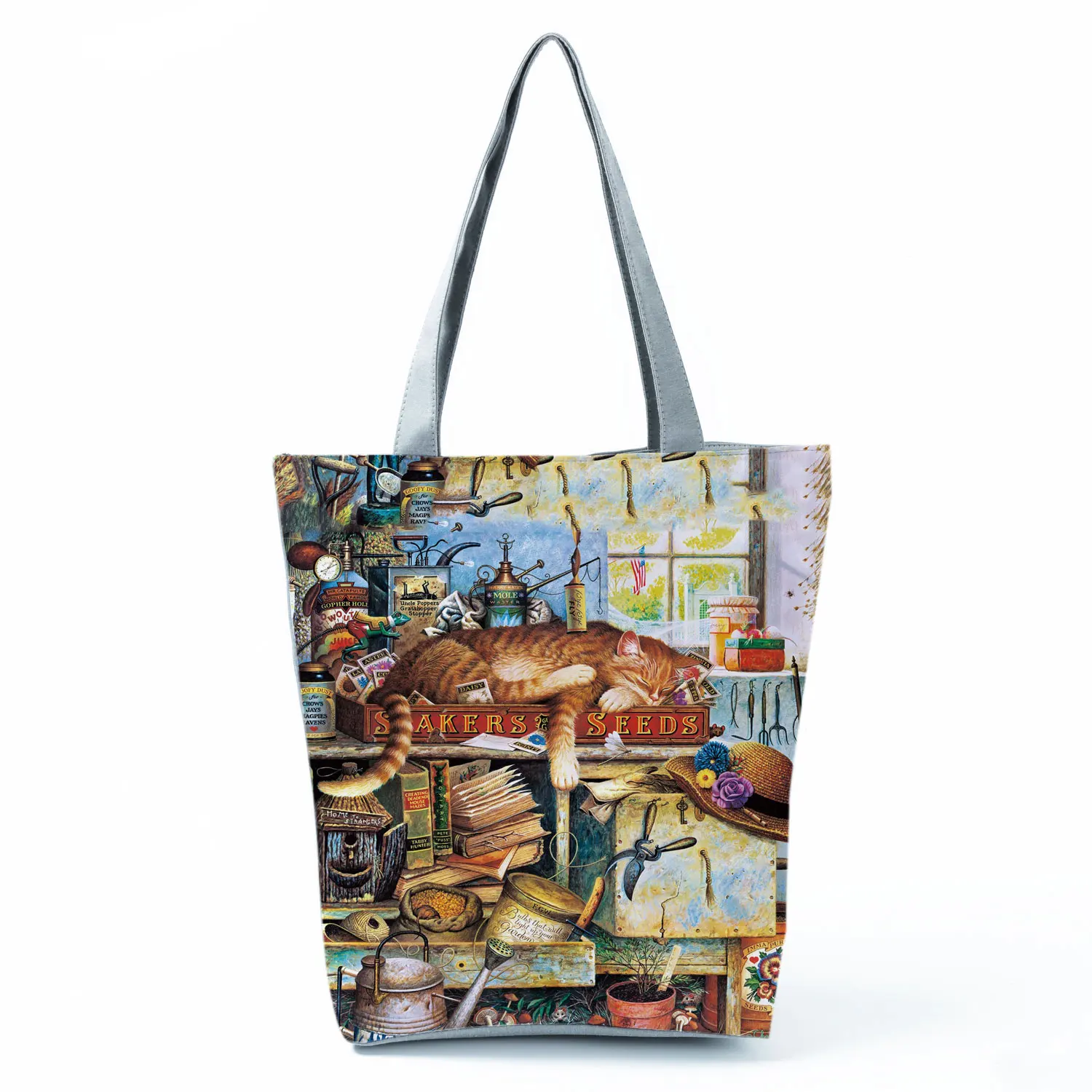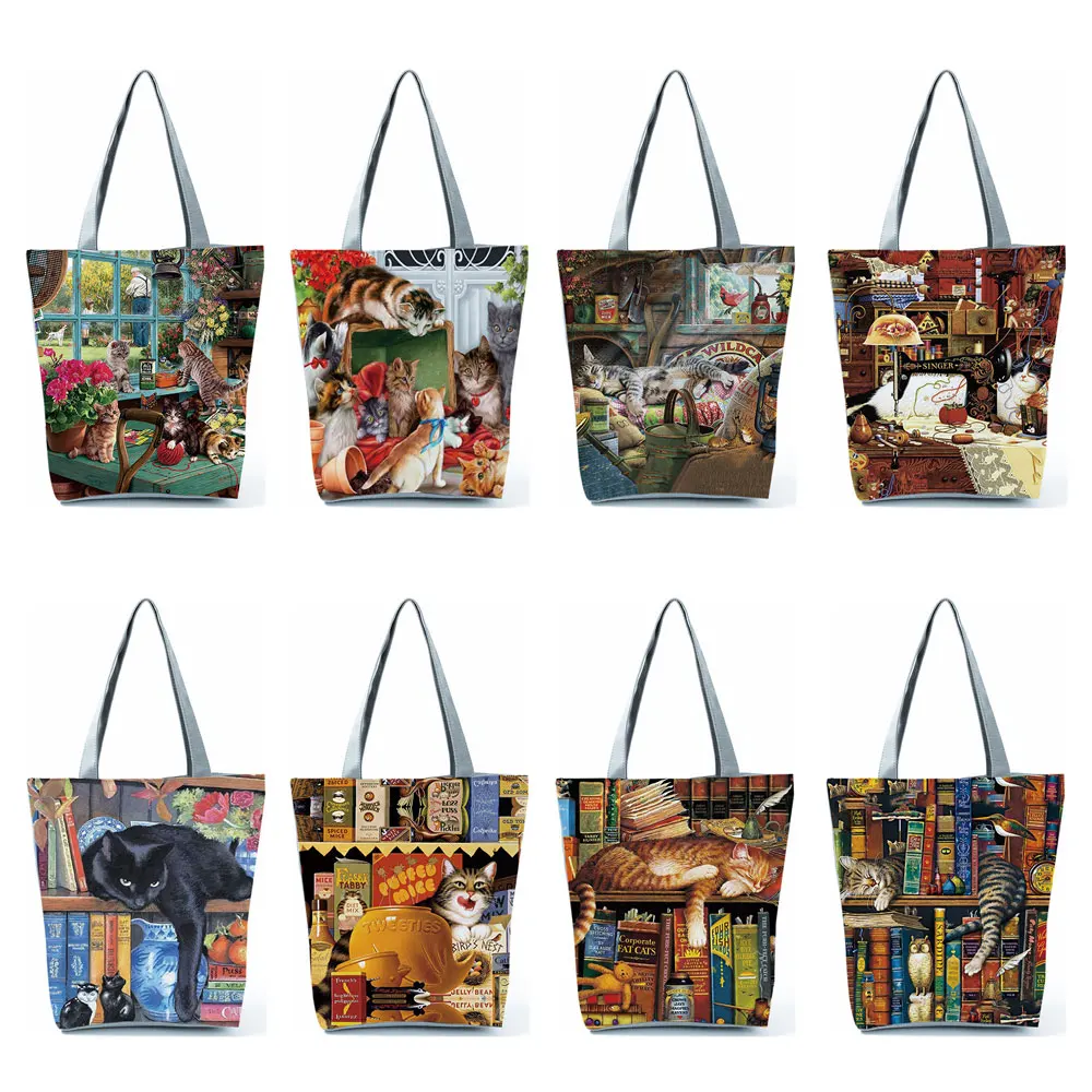 Милые женские дизайнерские сумки-тоут с принтом кота, масляной краской, тканевые многоразовые сумки-шопперы для покупок, школьные сумки-книжки