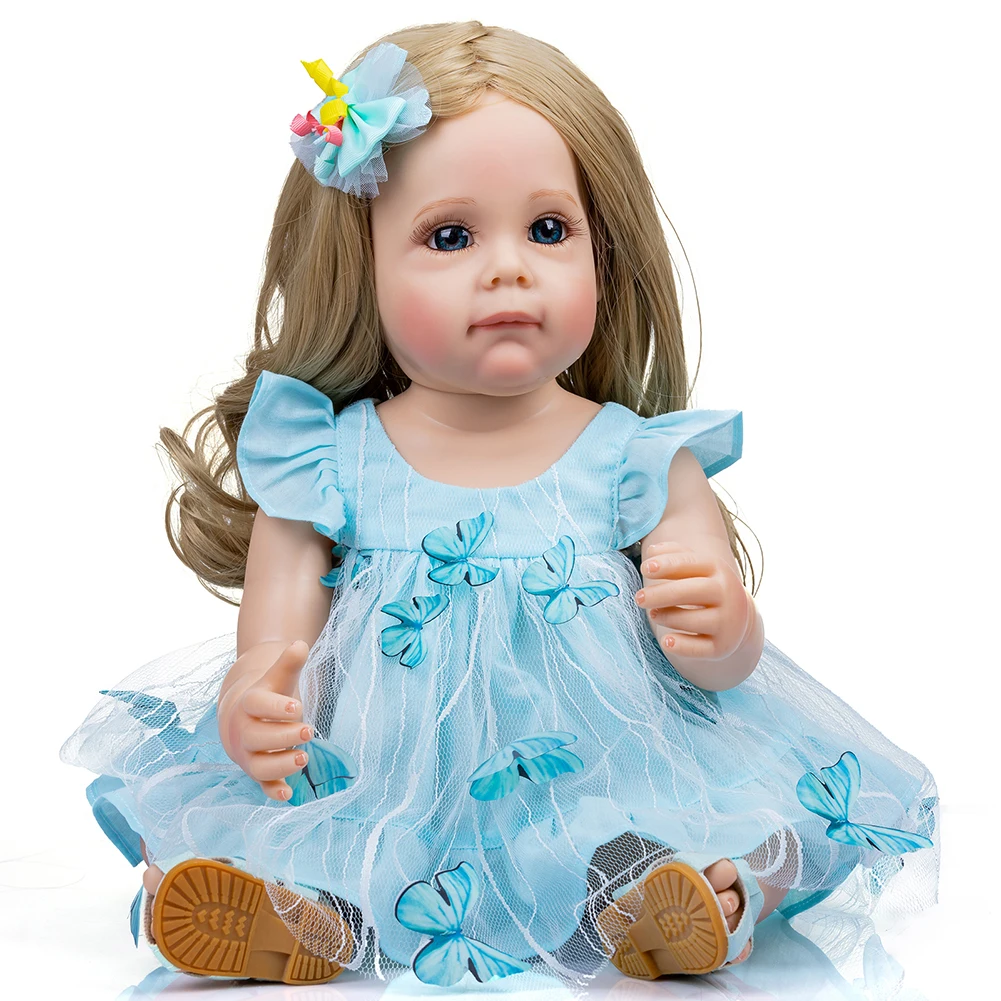 22 дюйма, полностью силиконовая кукла для новорожденных, милая, мягкая, на ощупь, Реалистичная, детская готовая кукла с одеждой, водонепроницаемая, подвижная игрушка, подарки для детей