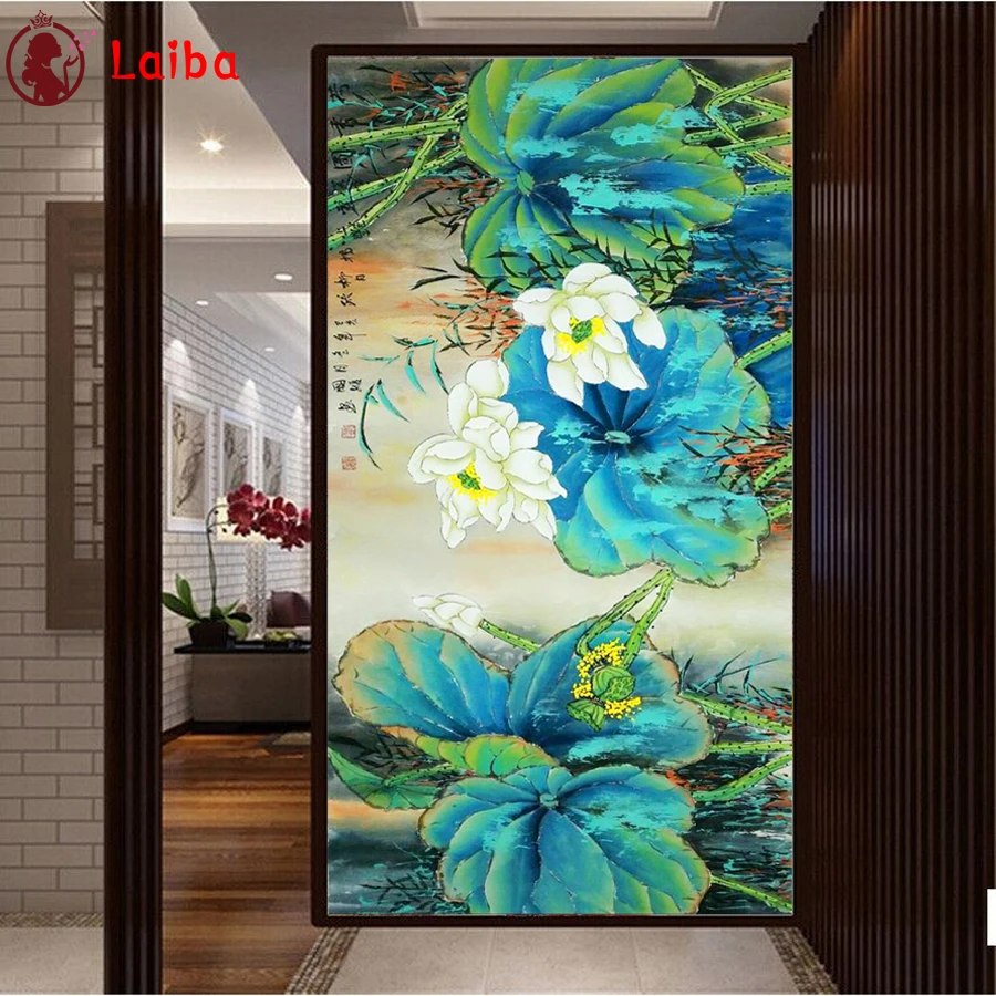 Алмазная живопись в китайском стиле вышивка крестом Алмазная вышивка лист, цветок лотоса 5D DIY камни в форме ромба Круглая Мозаика Ручной работы подарокПримечание: как правило, максимальная длина посылки не может превышать 70 см, мы должны сложить холст, когда короткая сторона холста превышает 70 см при доставке, пожалуйста, поймите это.