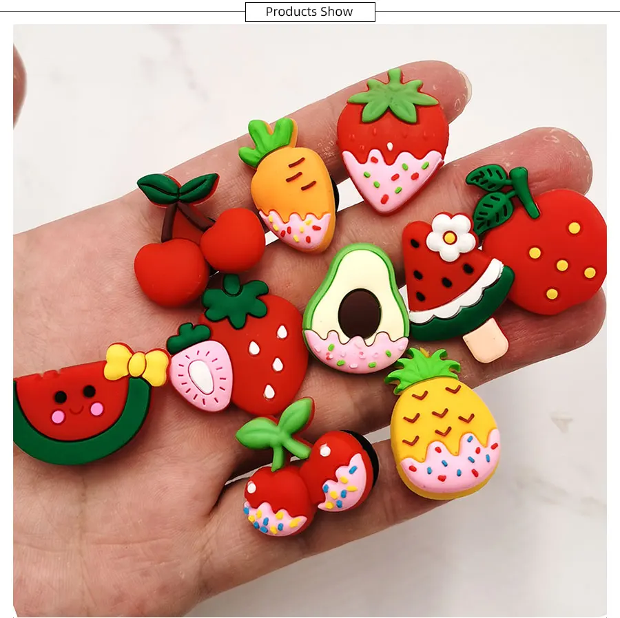 1 шт Фрукты Арбуз вишня ПВХ обувь Подвески Аксессуары для сандалий для браслетов обувь пряжки украшения ребенок X-MAS подарок Croc Jibz