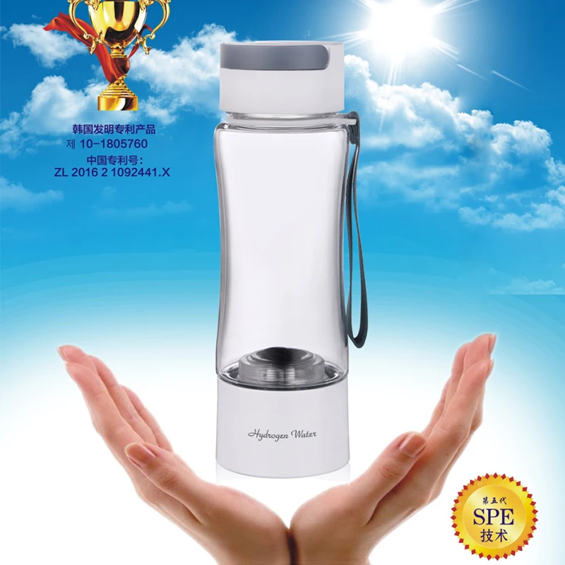 This Hydrogen Water Generator Bottle has food grade TRITAN body and CARRY handle, which is designed for outside sport and travel use. With quality Dupont N117 Ion PEM membrane, and latest new SPE technology with dual chamber solution, this bottle generates 99.9% high purity of rich hydrogen molecular water, 1000ppb - 3000ppb and anti-oxidant ORP upto -600mv. It has an exhaust gas hole at bottom, discharge ozone, chlorine, oxygen and h2o2.