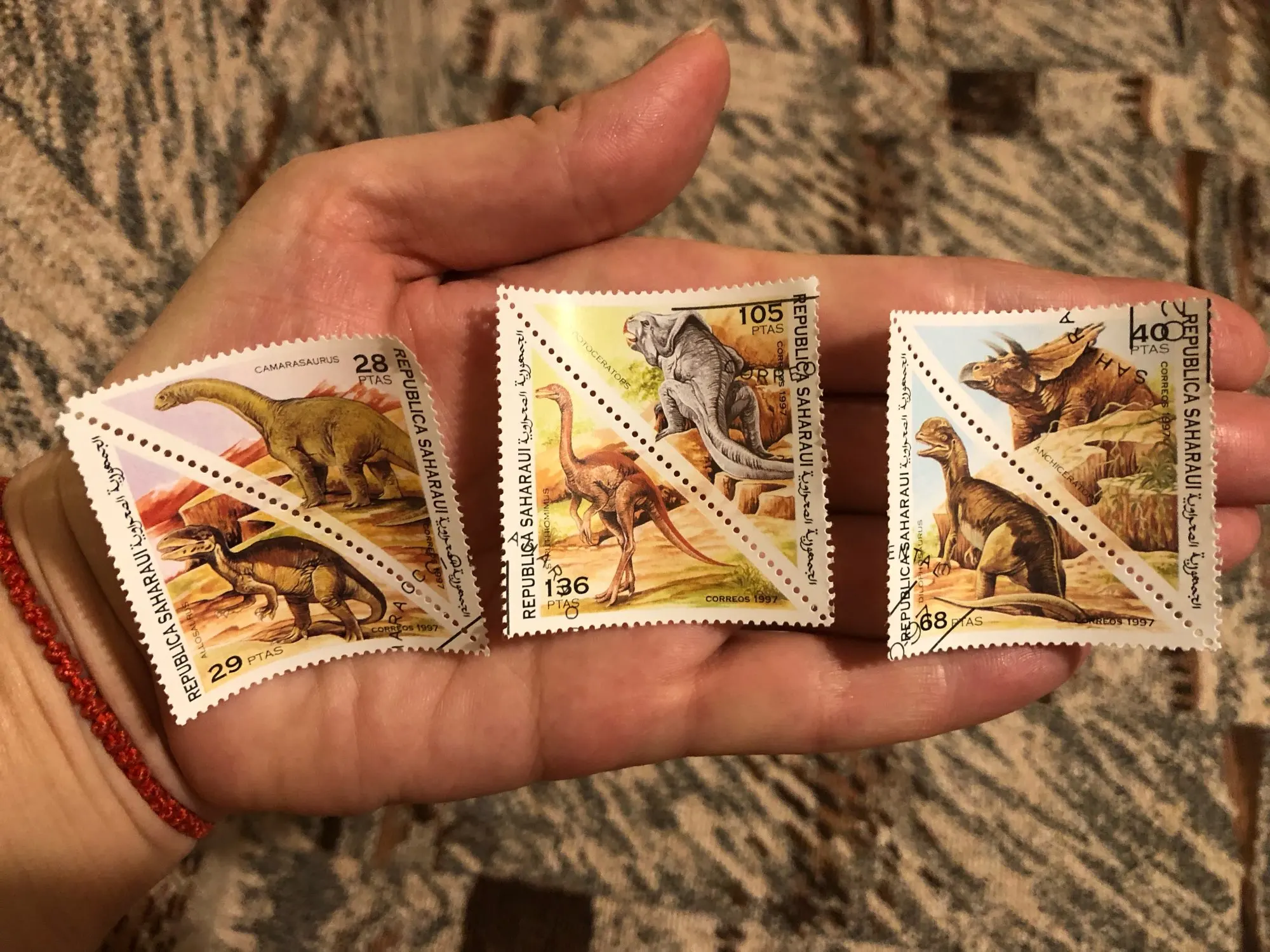 Show moreThe stamps are genuine and used postage stamps with post mark.