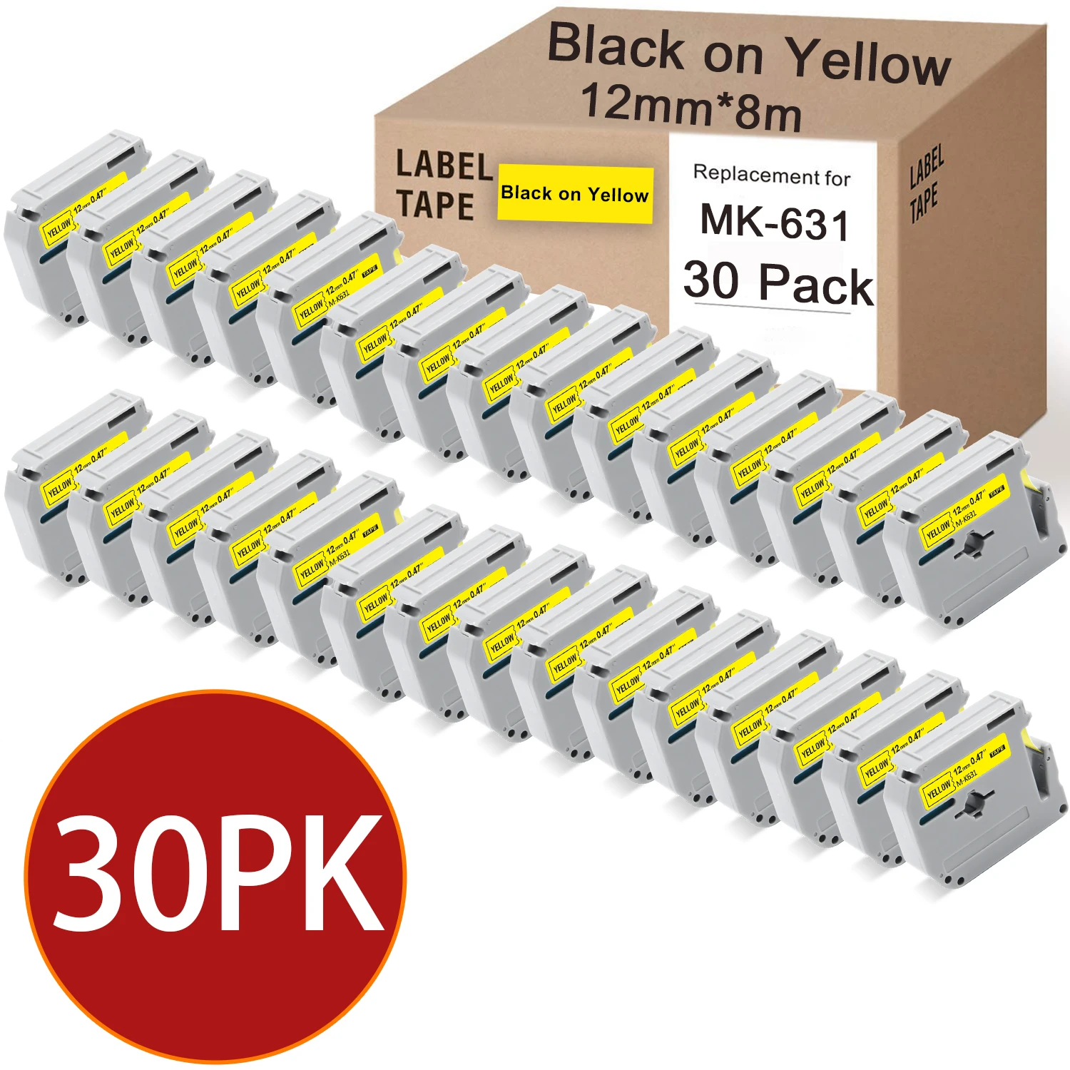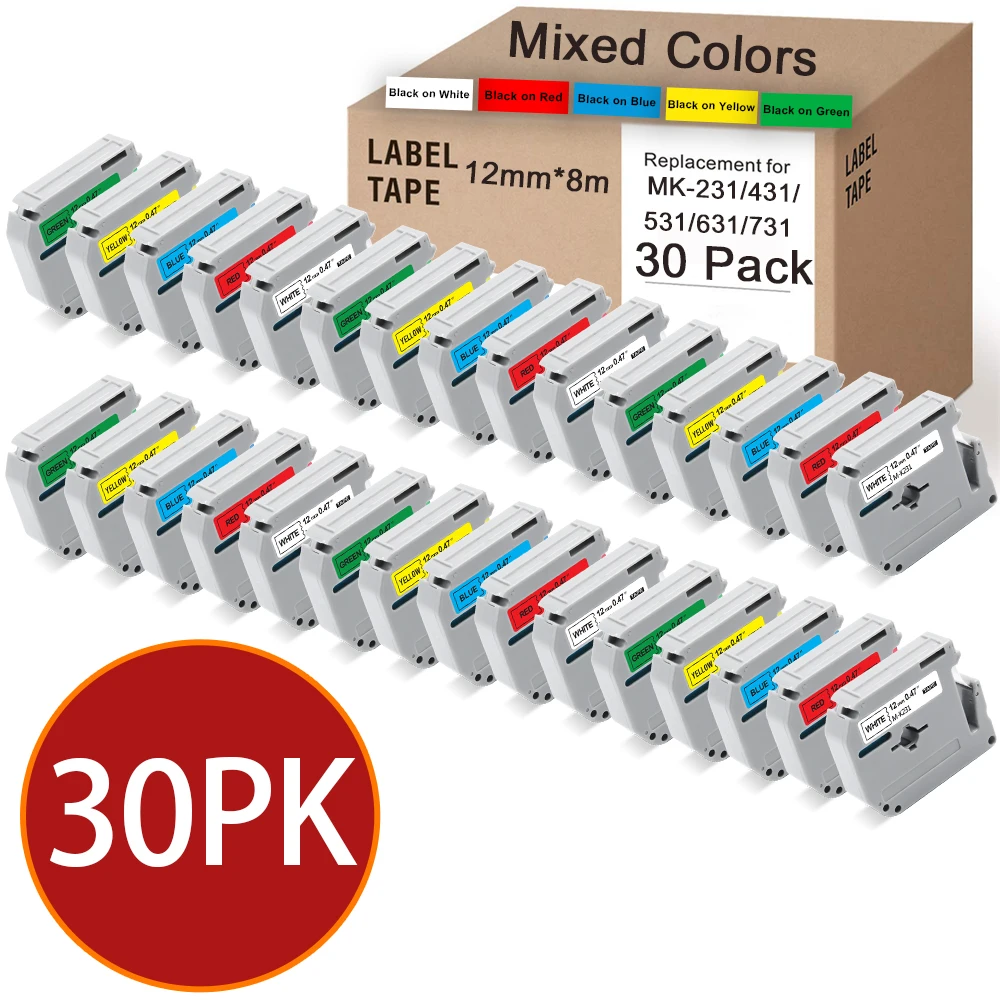 Labelwell 30 шт. 12 мм MK-231 MK-631 Совместимость для Brother M-K231 MK-131 MK431 MK531 MK631 MK731 MK831 лента для PT-45M PT-70 PT-80 P-touch принтер этикеток