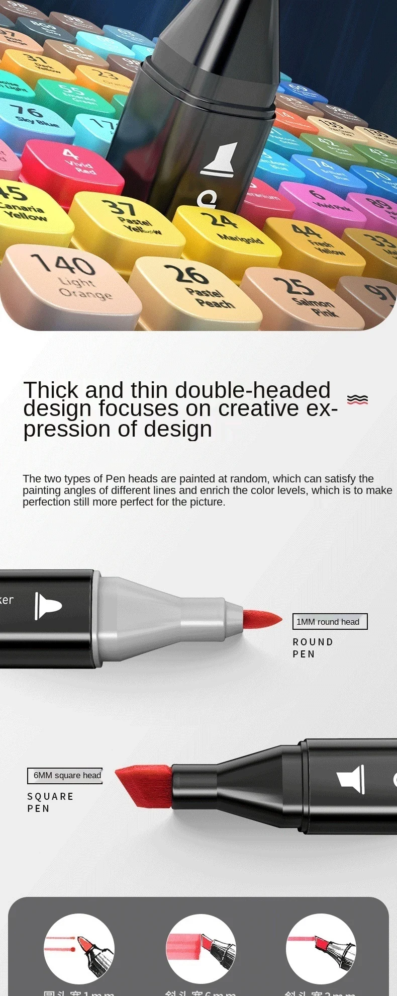 Двойная головка Mark pen: 1 мм круглая головка/6 мм косая головка