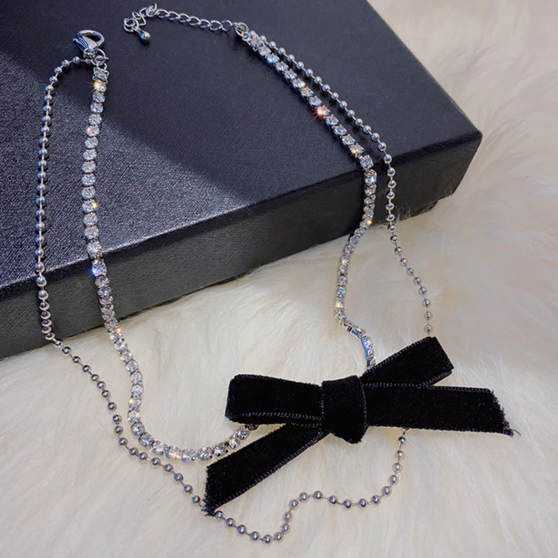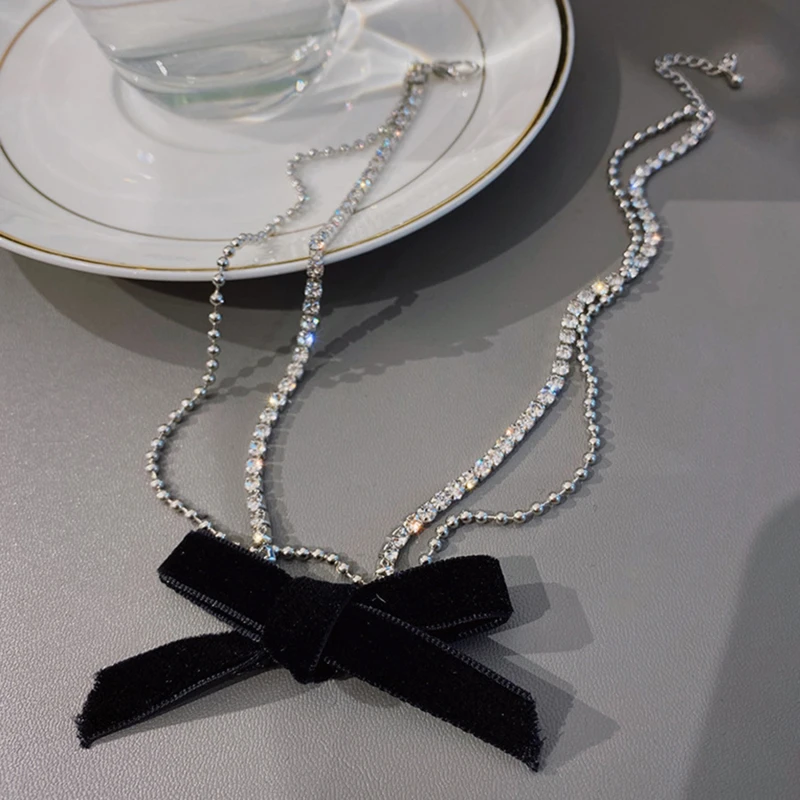 Роскошные Bling Стразы ожерелье с бантиком для женщин девушка черный бархат галстук лук Чокеры ожерелья элегантные аксессуары