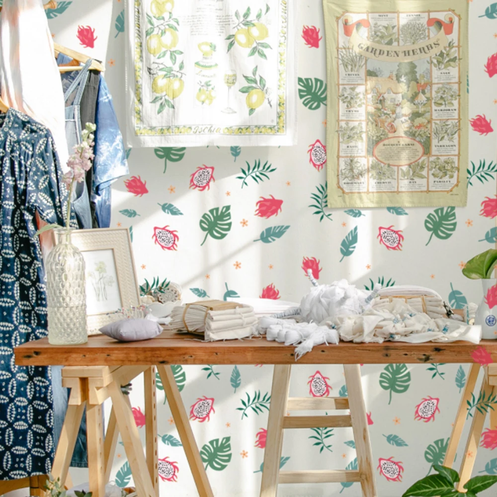 Дракон фрукты стены зеленые растения наклейки домашний Декор мультфильм гостиная растения печать наклейка на стену декор искусство настенные наклейки