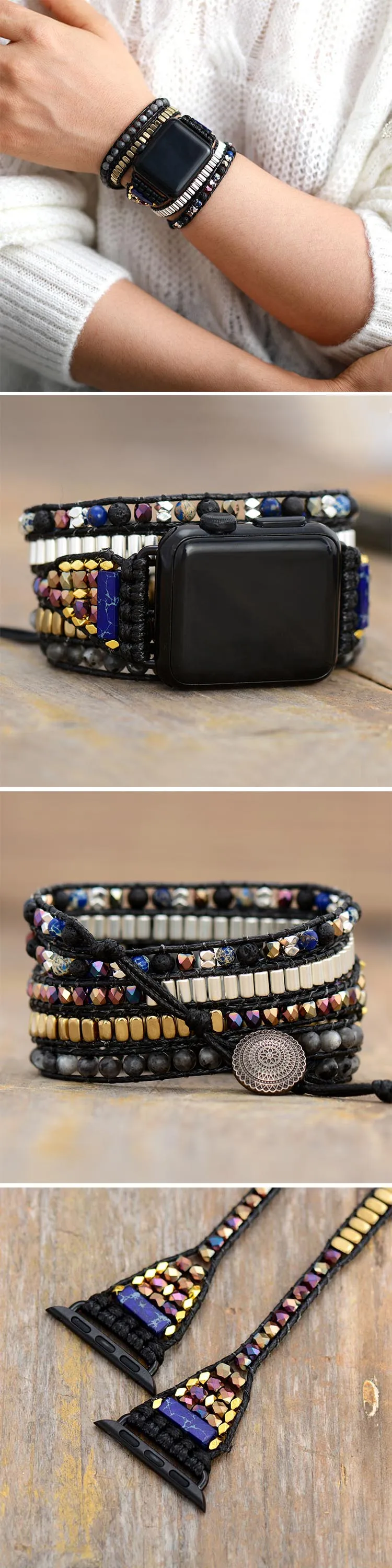 Парные часы из натурального камня черного яблока, браслет с бусинами, хип-хоп 5, ремешок для часов с воском