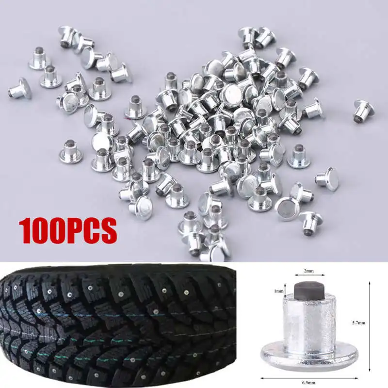 100pcs 6.5mm/0.26" Wheel Tyre Stud Screws Snow Tire Spikes for Bike Motorcycle ATV Shoes