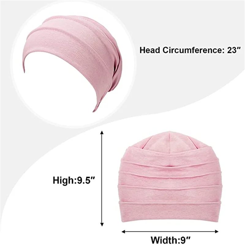 Эти шапочки шляпы для сна обладают хорошей эластичностью, которые могут быть растянуты и удобны для большинства женских головок для надежной посадки, не легко соскальзывают и подходят для всех сезонов, не сковывая голову.