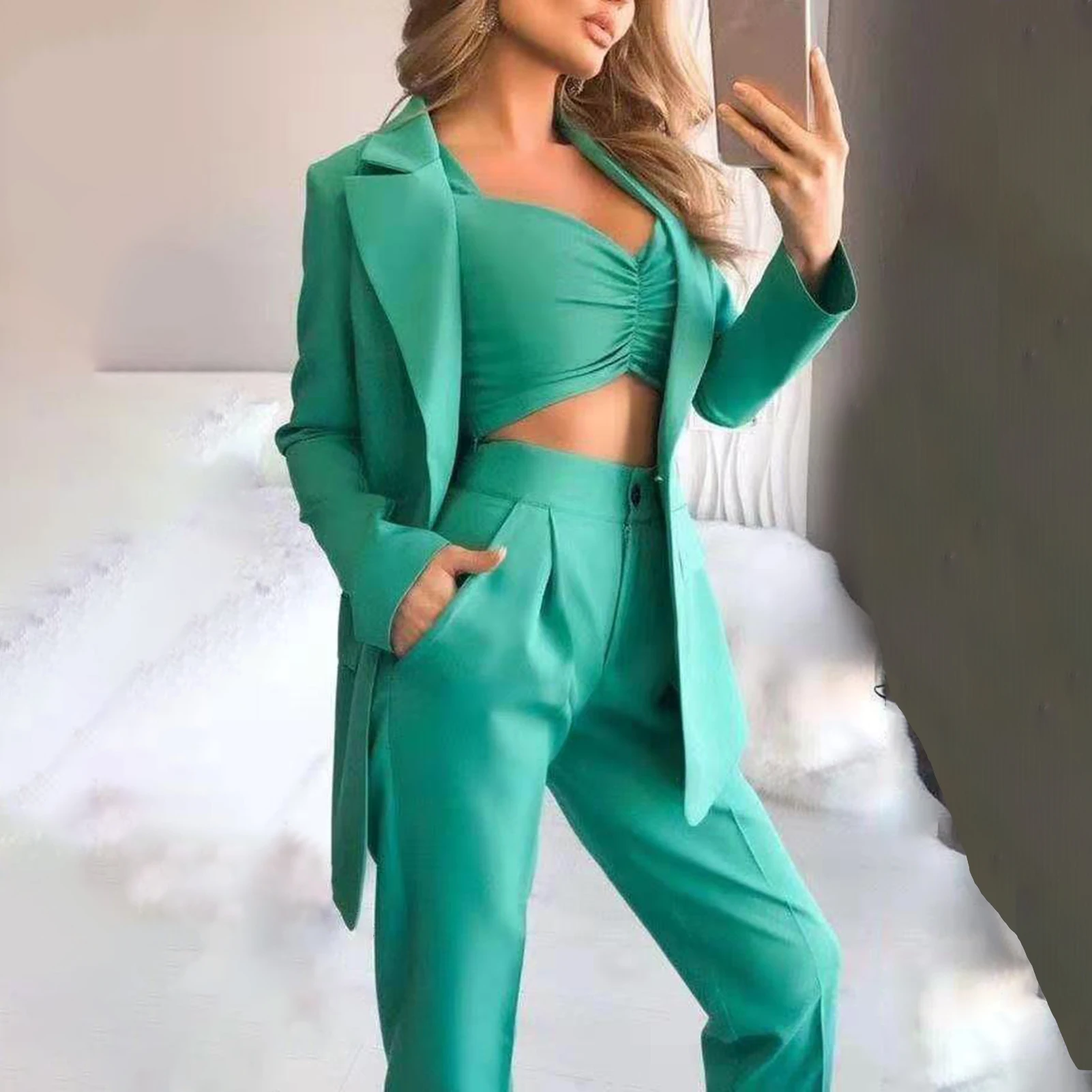 3 шт./компл., новый костюм, куртка, костюм, Повседневный, простой, однотонный, три предмета, зимняя офисная одежда, женский элегантный костюм, куртка и штаны