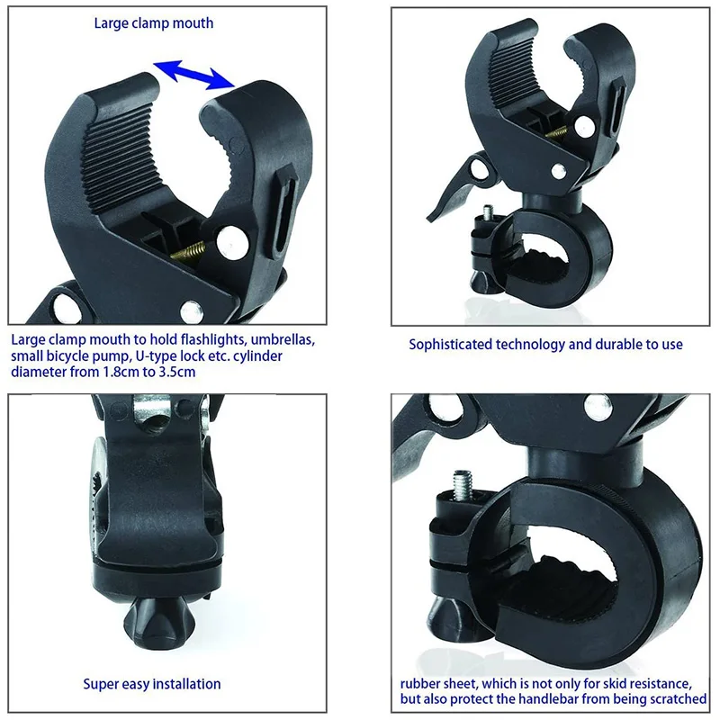 Предназначен для надежного крепления и удержания светодиодный фонарик на велосипеде, он устойчив и прочен.