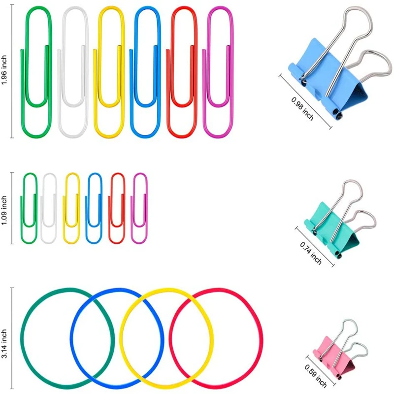 Разные размеры: разные размеры (15 мм, 19 мм, 25 мм) для скрепок, разные размеры (28 мм, 50 мм) для скрепок, И резиновые ленты могут удовлетворить ваши различные потребности и различные стили.
