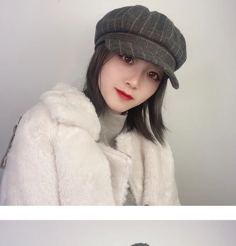 Женские шапки, мода 2021, новые береты, женские ретро-шляпы, осень и зима, универсальные, в клетку, восьмиугольная шляпа, женский берет