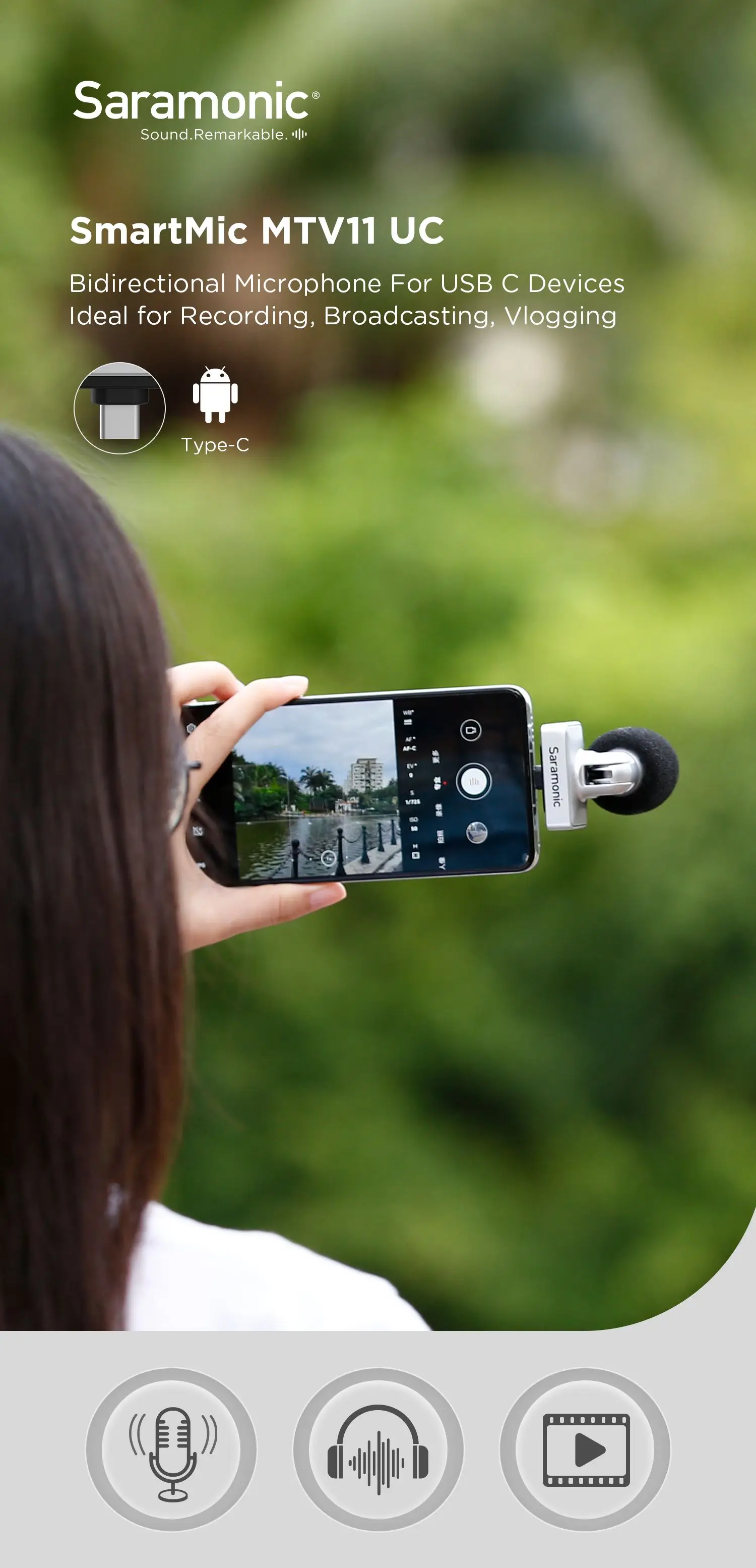 The SmartMic MTV11 UC is a digital stereo condenser microphone that supports up to 24bit/48kHz resolution for USB-C devices.